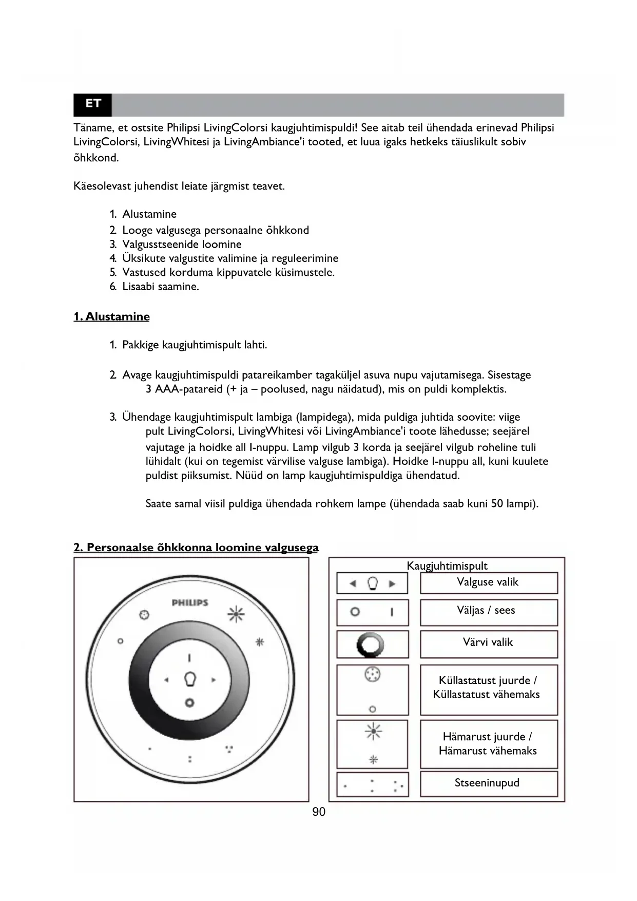 Täname, et ostsite Philipsi LivingColorsi kaugjuhtimispuldi! See aitab teil ühendada erinevad Philipsi