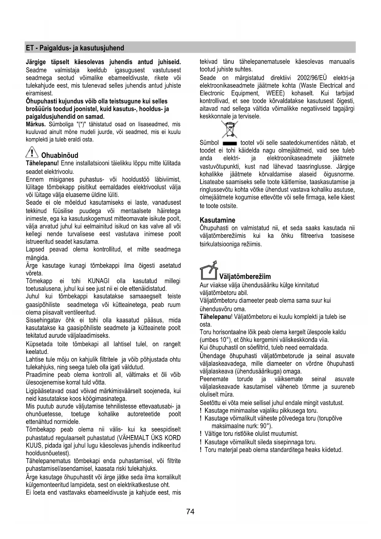puhastatud regulaarselt puhastatud (VÄHEMALT ÜKS KORD KUUS, pidada igal juhul lugu käesolevas juhendis indikeeritud