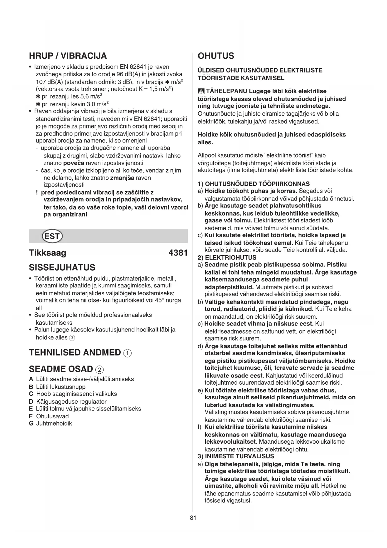 ÜLDISED OHUTUSNÕUDED ELEKTRILISTE TÖÖRIISTADE KASUTAMISEL TÄHELEPANU Lugege läbi kõik elektrilise
