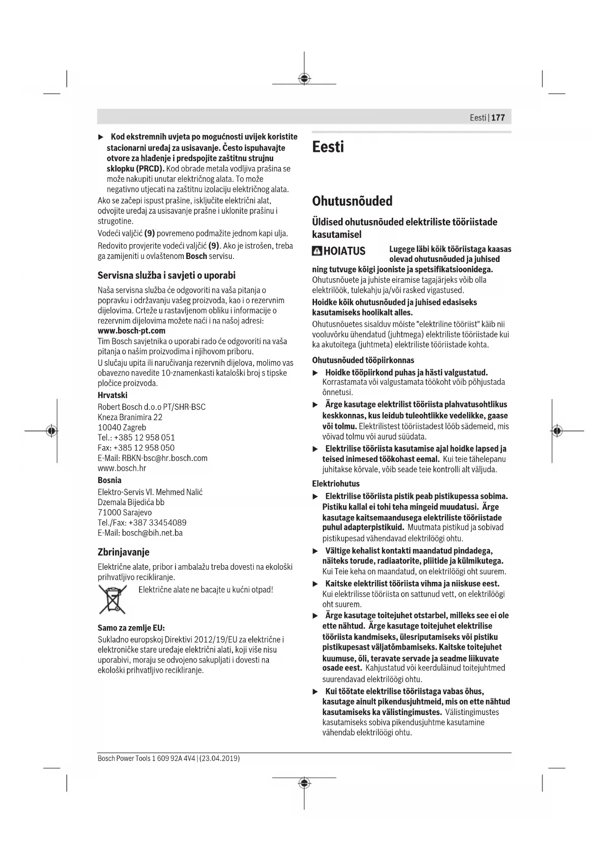 vähendab elektrilöögi ohtu. Bosch Power Tools 1 609 92A 4V4 | (23.04.2019)178 | Eesti