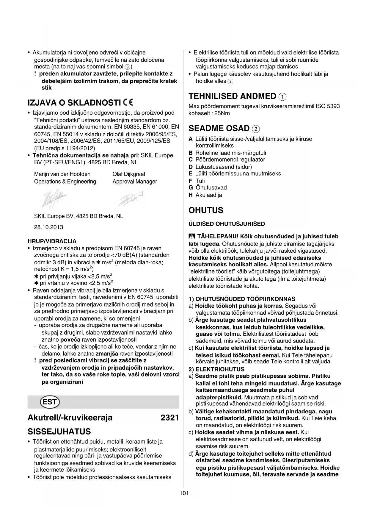 61000, EN 60745, EN 55014 vastavalt direktiivide
