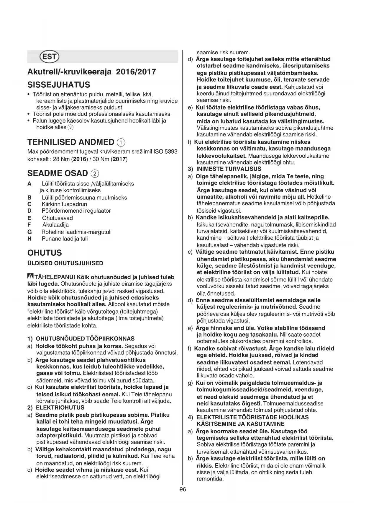 ÜLDISED OHUTUSJUHISED TÄHELEPANU! Kõik ohutusnõuded ja juhised tuleb