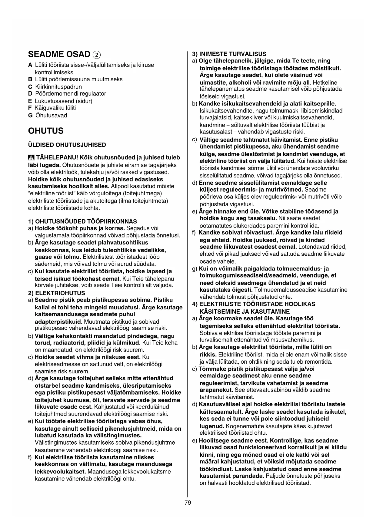 4) ELEKTRILISTE TÖÖRIISTADE HOOLIKAS KÄSITSEMINE JA KASUTAMINE