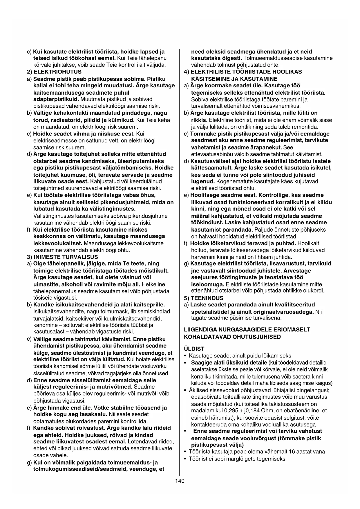 4) ELEKTRILISTE TÖÖRIISTADE HOOLIKAS KÄSITSEMINE JA KASUTAMINE