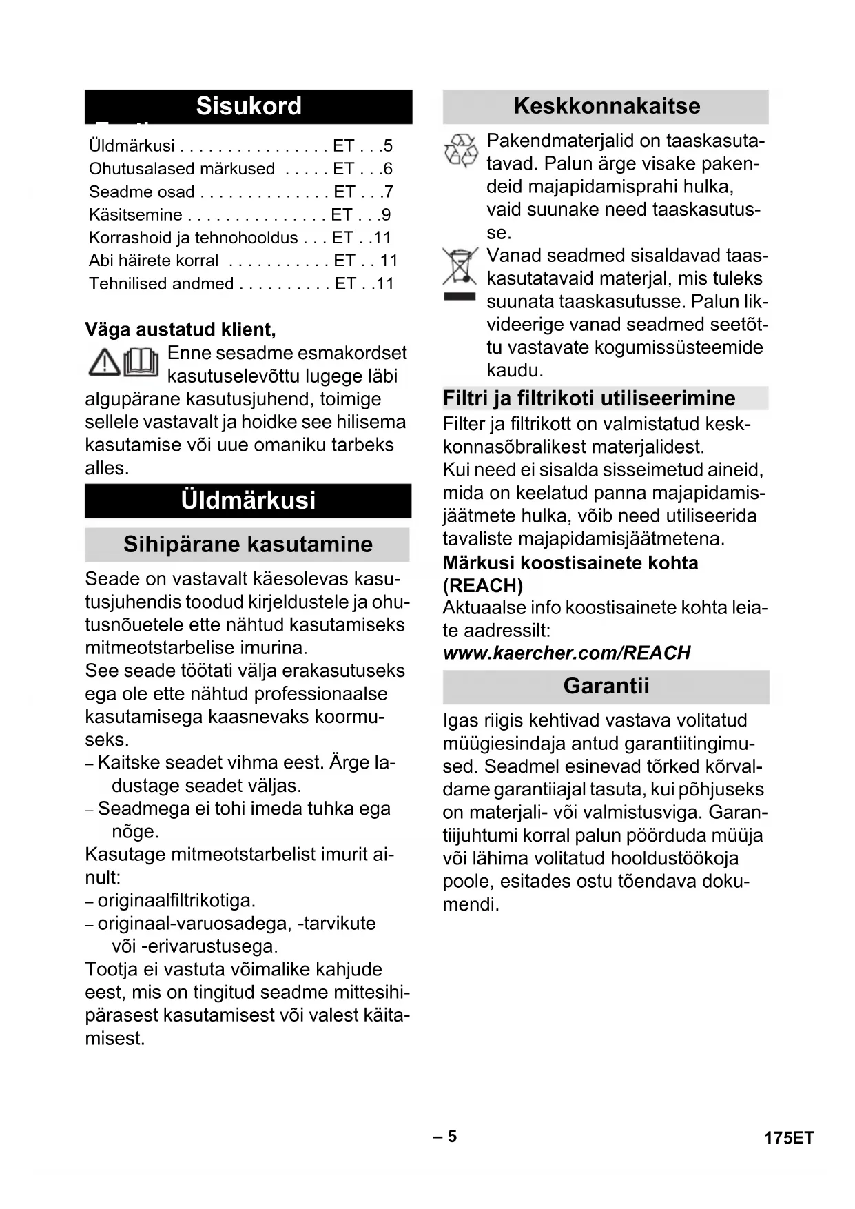www.kaercher.com/REACH Igas riigis kehtivad vastava volitatud