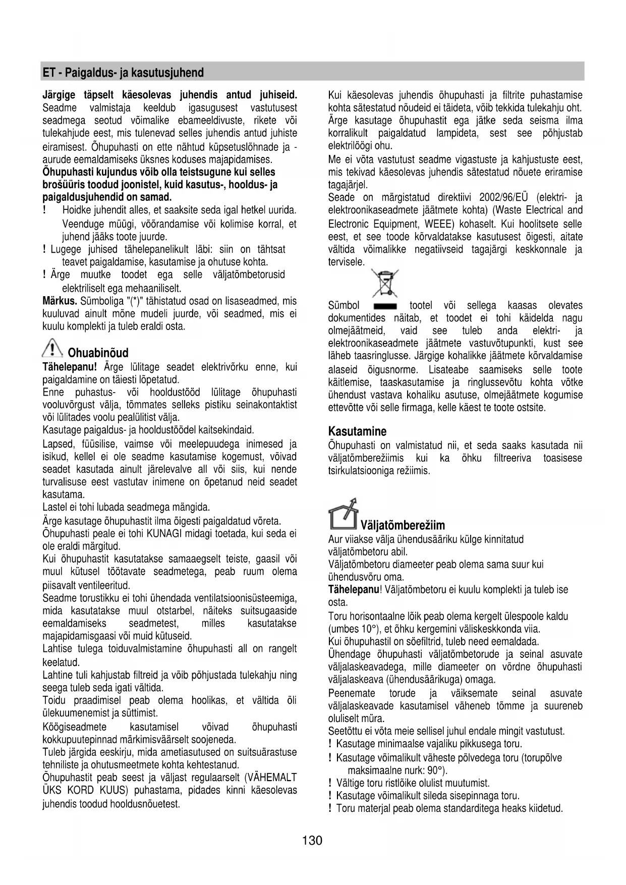 Seade on märgistatud direktiivi 2002/96/EÜ (elektri- ja