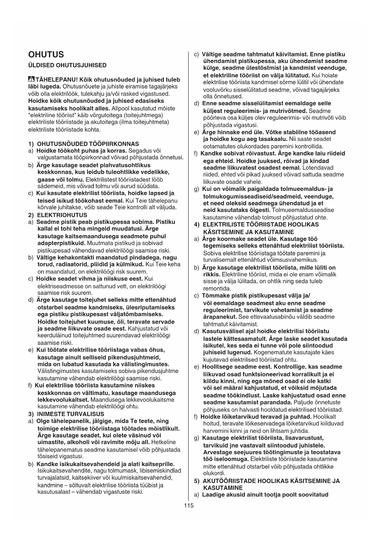 4) ELEKTRILISTE TÖÖRIISTADE HOOLIKAS KÄSITSEMINE JA KASUTAMINE