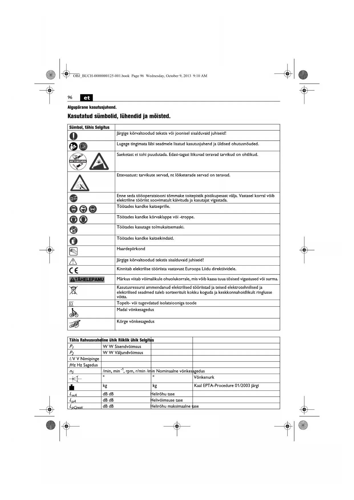 Elektrilisele töririistale ei tohi kruvide voi neetidega kinnitada silte ja margiseid. Kahjustaatud isolatssoon ei taga kaliset elektrilögi eest. Kasutage kleebiseld.