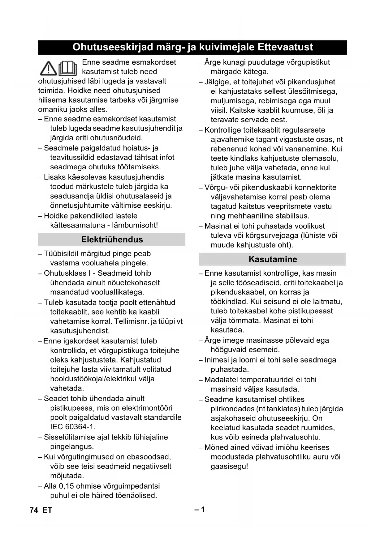 KASUTUSJUHEND NT 351 Ap Kärcher