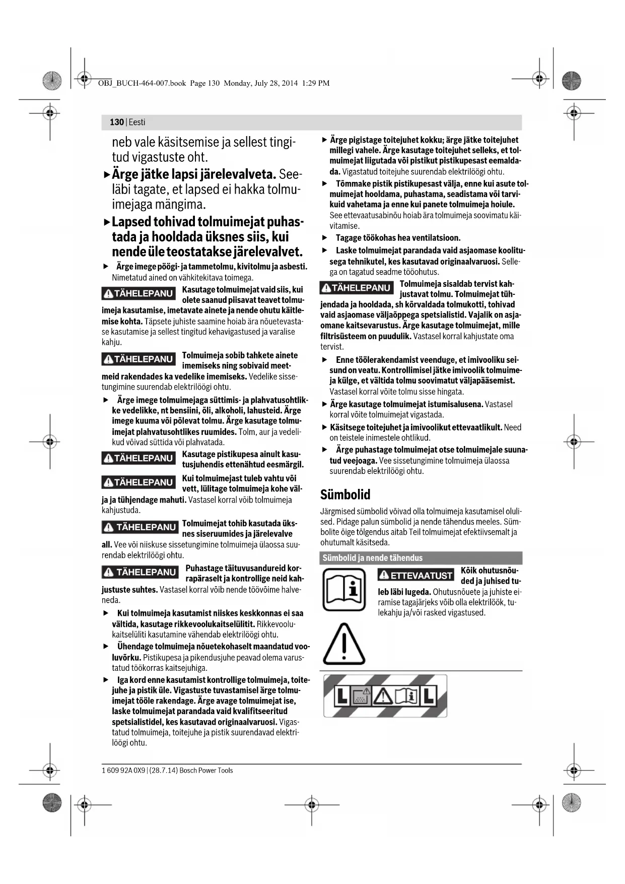 seotud ohtudest. Vastasel korral esi- OBJ_BUCH-464-007.book Page 129 Monday, July 28, 2014 1:29 PM130 | Eesti 1 609 92A 0X9 | (28.7.14) Bosch Power Tools neb vale käsitsemise ja sellest tingi-