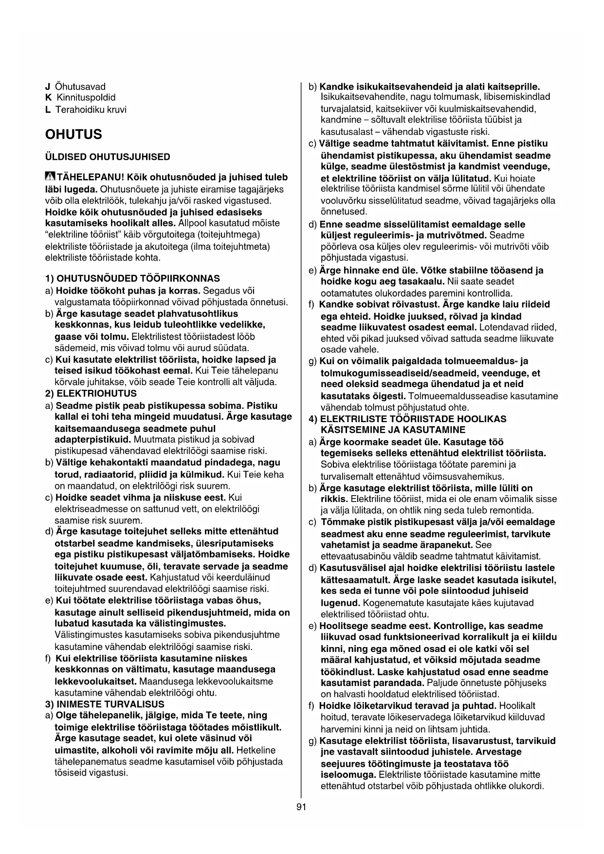 ÜLDISED OHUTUSJUHISED TÄHELEPANU! Kõik ohutusnõuded ja juhised tuleb
