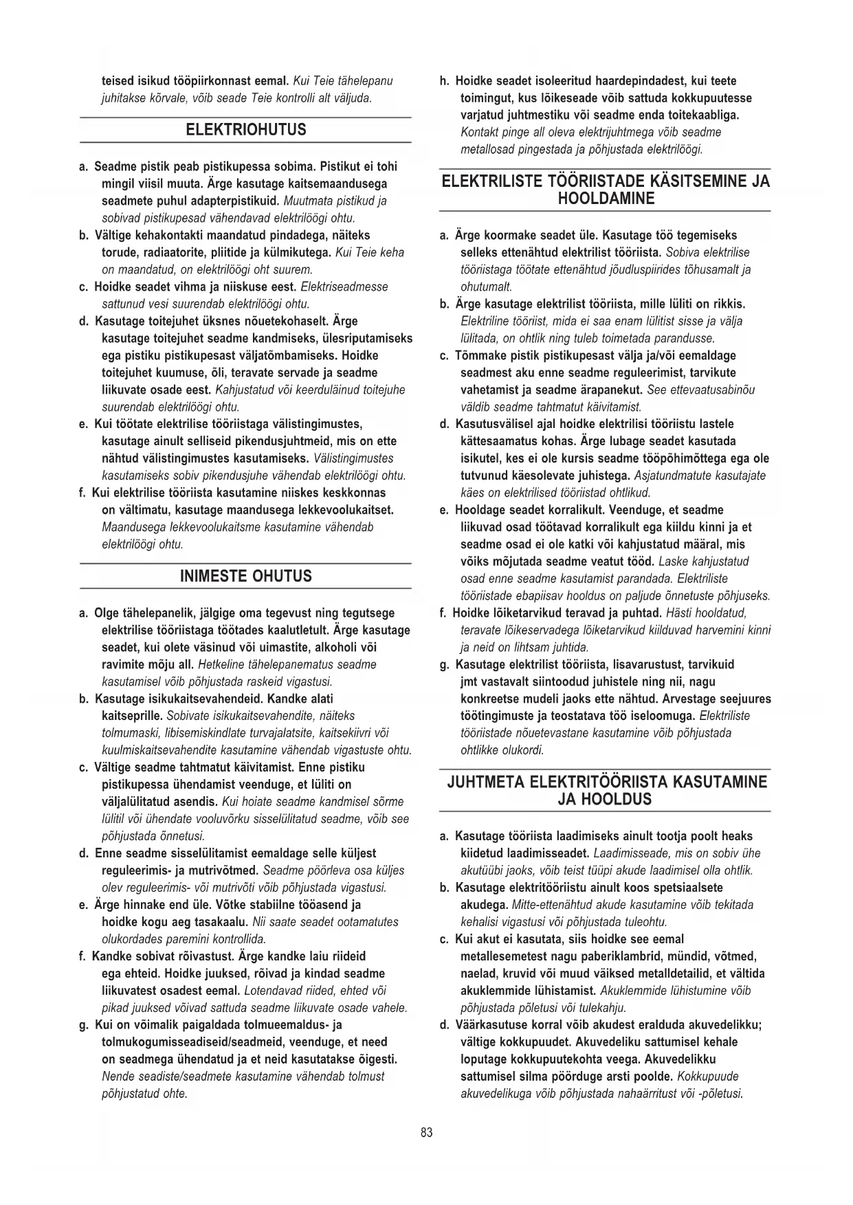 ja elektrilööke, tuleb seade enne hooldus- ja parandustööde