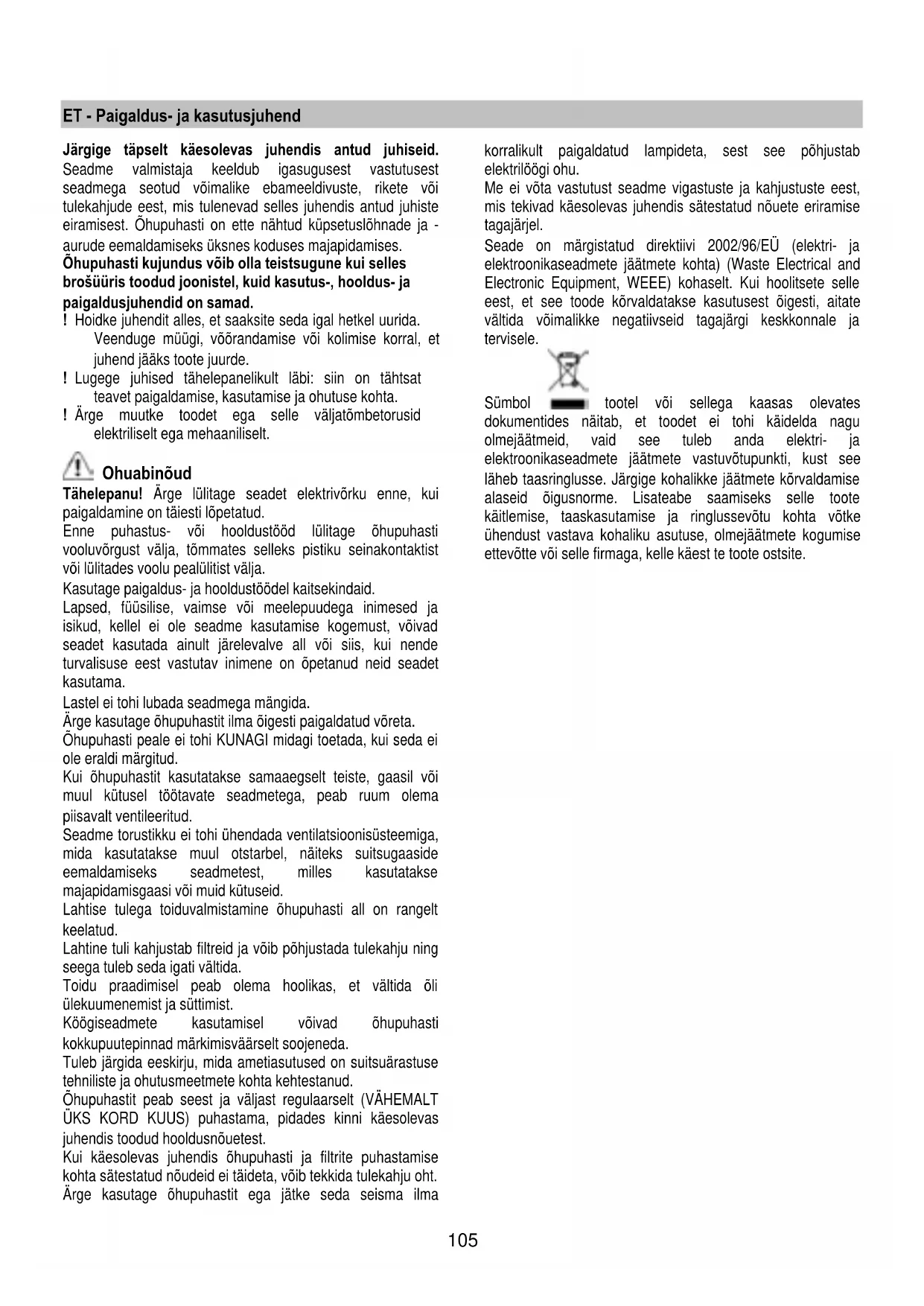 Seade on märgistatud direktiivi 2002/96/EÜ (elektri- ja