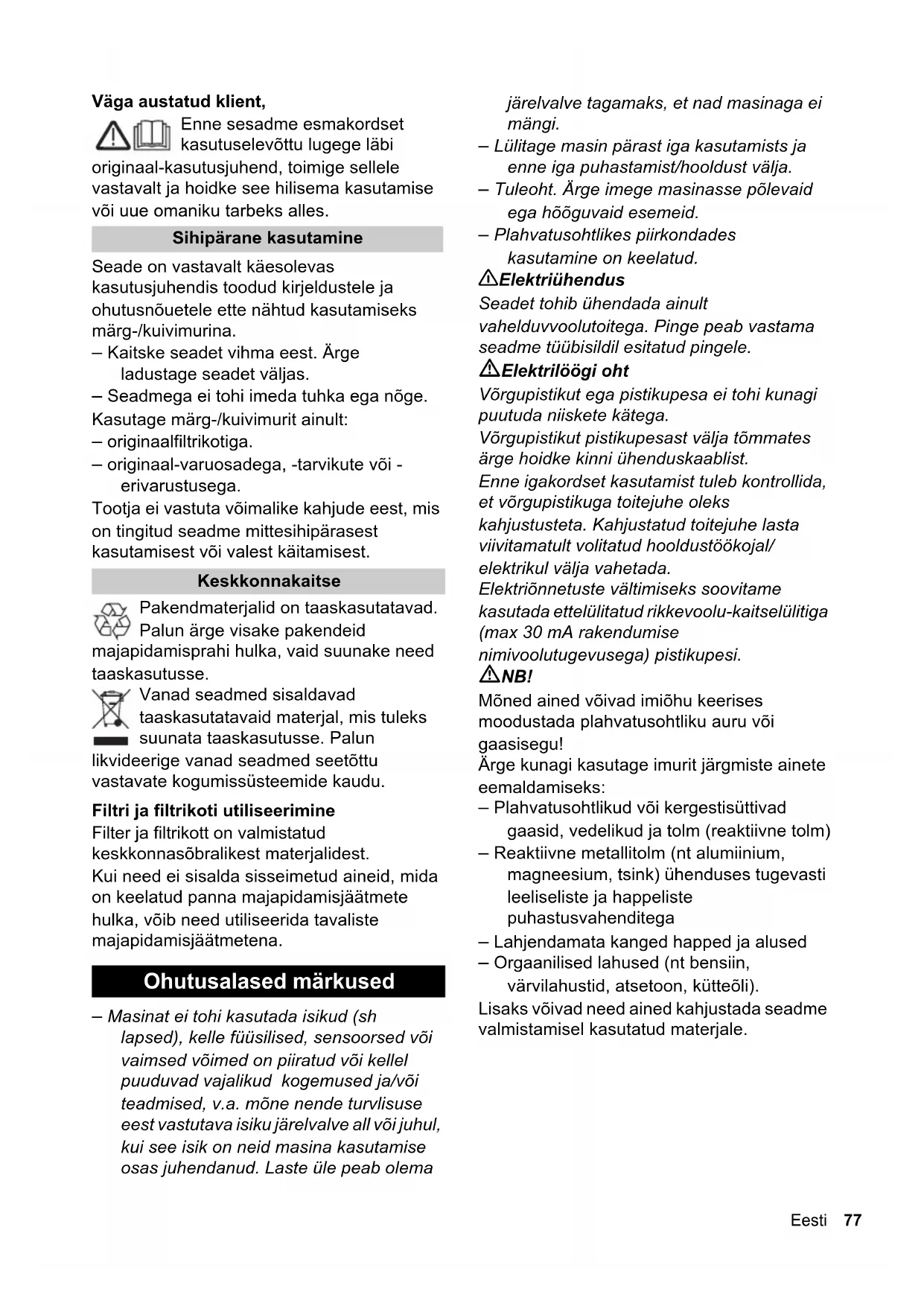 A 2504 - Tolmuimeja Kärcher - Tasuta kasutusjuhend