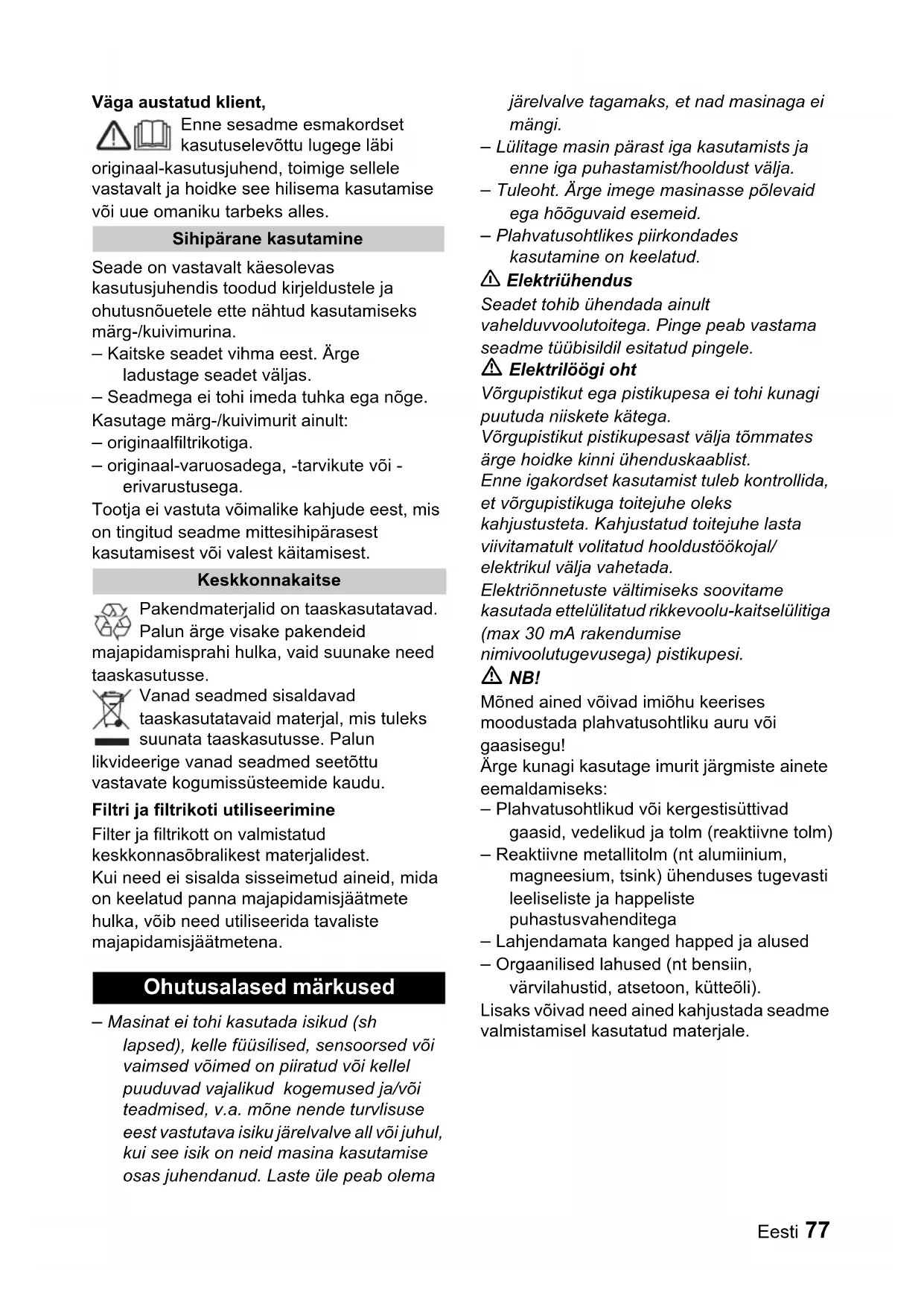 Ohutusalased märkused78 Eesti