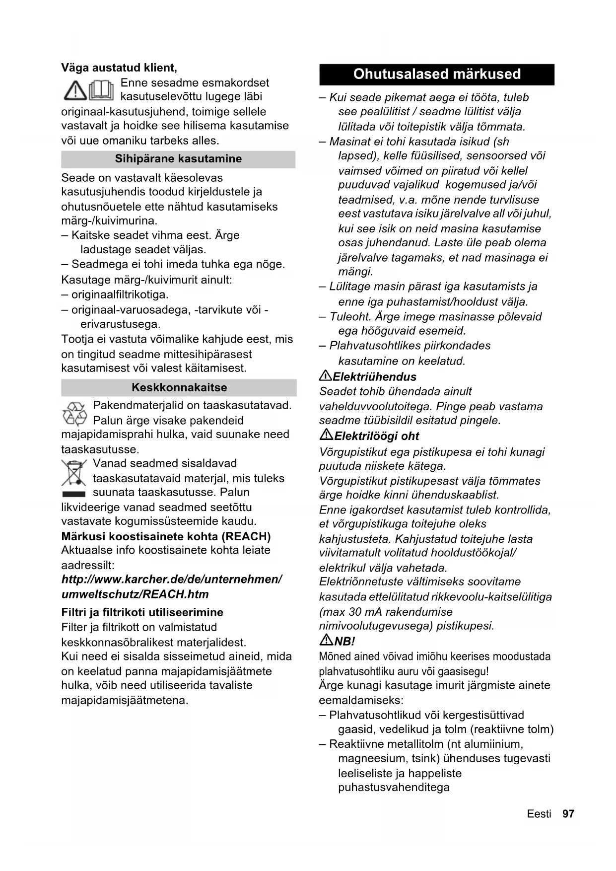 A 2236 X - Tolmuimeja Kärcher - Tasuta kasutusjuhend