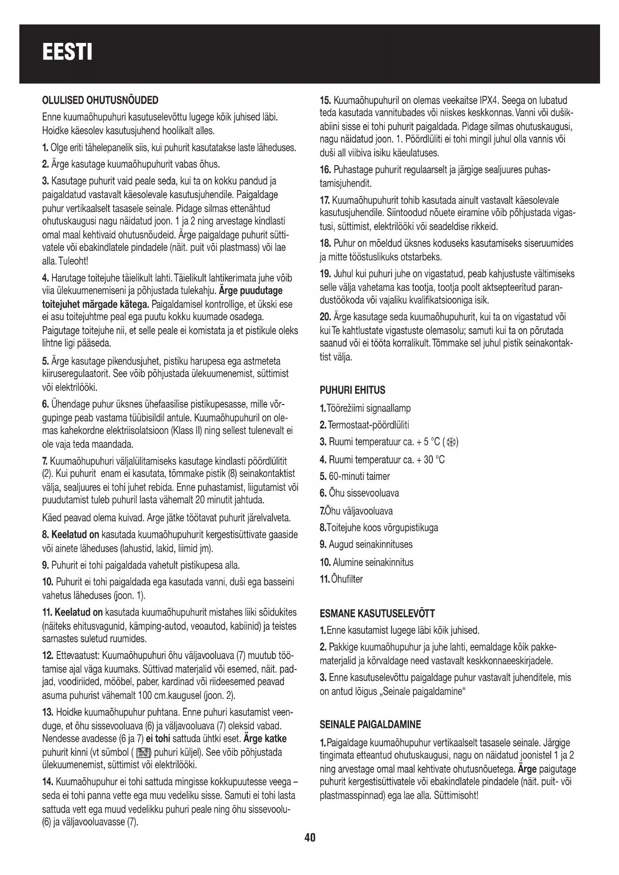 mootorilt ja kütteelemendilt tolm eemaldada.EESTI