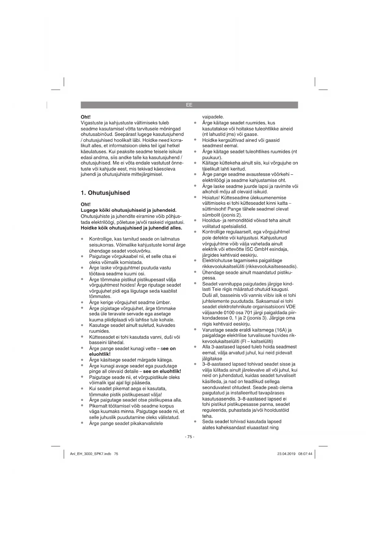 Omavahel spetsiaalselt eraldatud kütteele- mentide abil töötava küttesüsteemi ja tugeva Anl_EH_3000_SPK7.indb 76Anl_EH_3000_SPK7.indb 76 23.04.2019 08:07:4423.04.2019 08:07:44EE