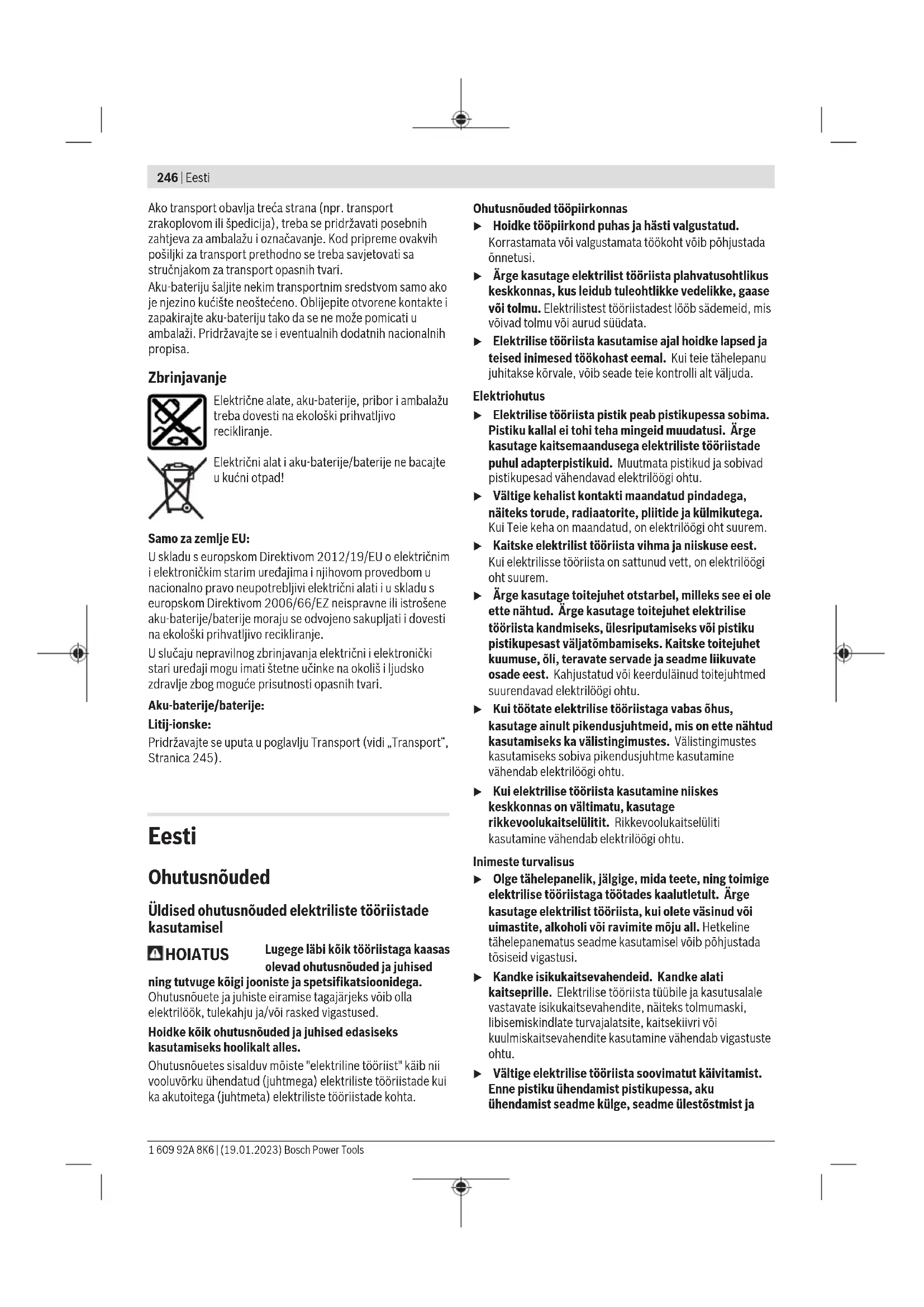 Mõõdetud 20−25°C juures akuga ProCORE18V 8.0Ah. B) Piiratud võimsus temperatuuril <0°C. Bosch Power Tools 1 609 92A 8K6 | (19.01.2023)250 | Eesti Andmed müra/vibratsiooni kohta