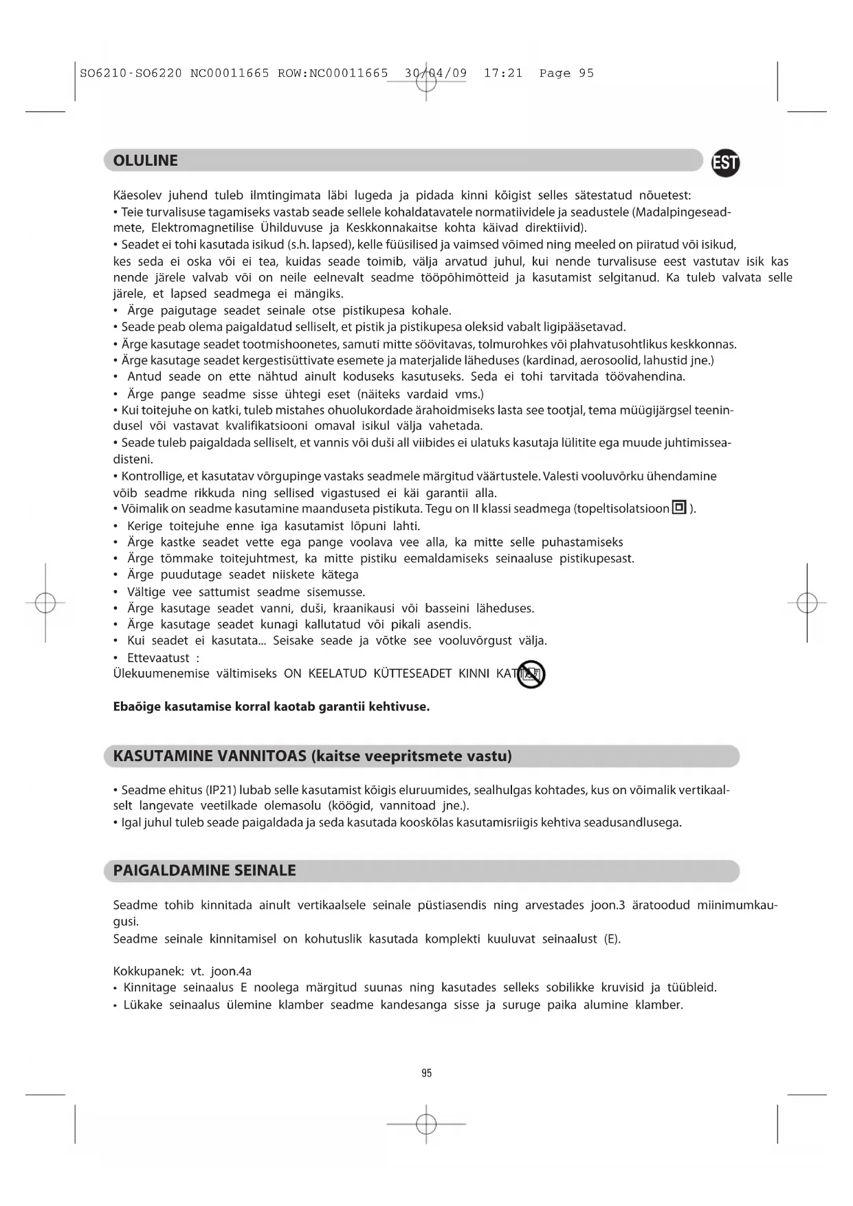 SO6210-SO6220 NC00011665 ROW:NC00011665 30/04/09 17:21 Page 94EST OLULINE Käesolev juhend tuleb ilmtingimata läbi lugeda ja pidada kinni kõigist selles sätestatud nõuetest: