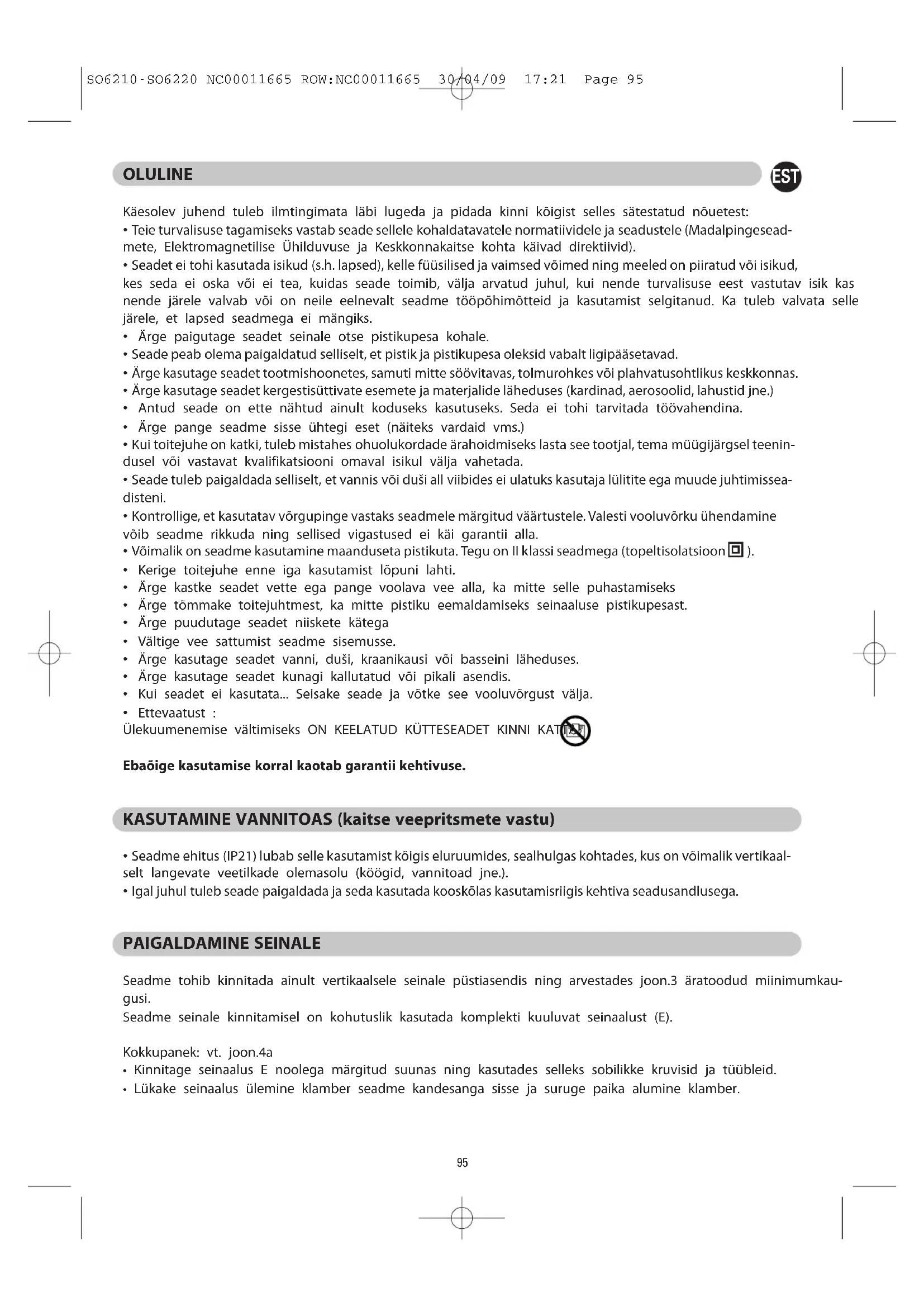 SO6210-SO6220 NC00011665 ROW:NC00011665 30/04/09 17:21 Page 94EST OLULINE Käesolev juhend tuleb ilmtingimata läbi lugeda ja pidada kinni kõigist selles sätestatud nõuetest: