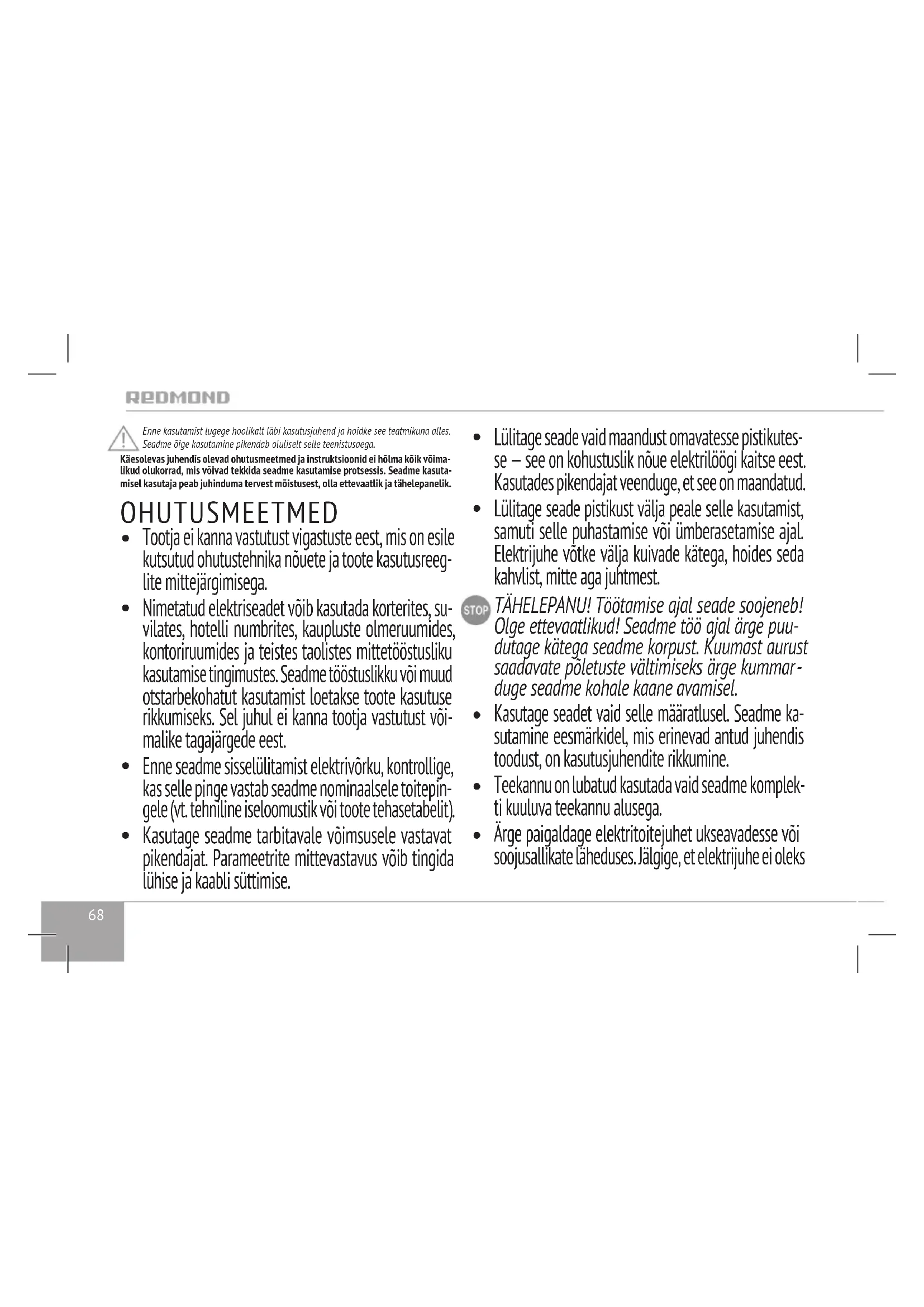 KASUTUSJUHEND RKG176E Redmond