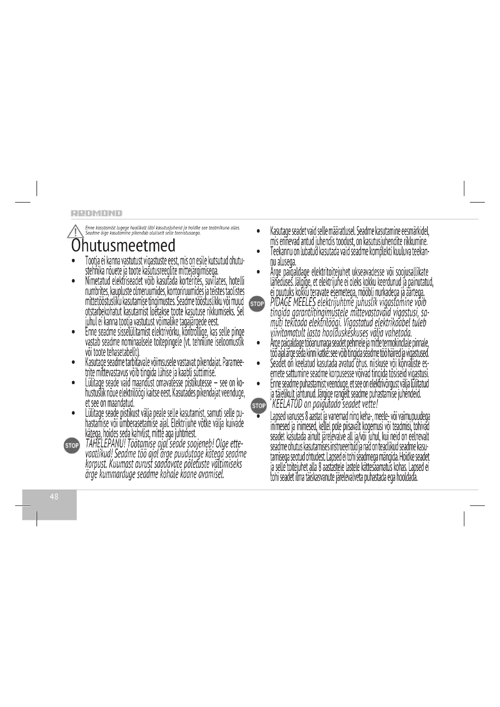 KASUTUSJUHEND RKG127E Redmond