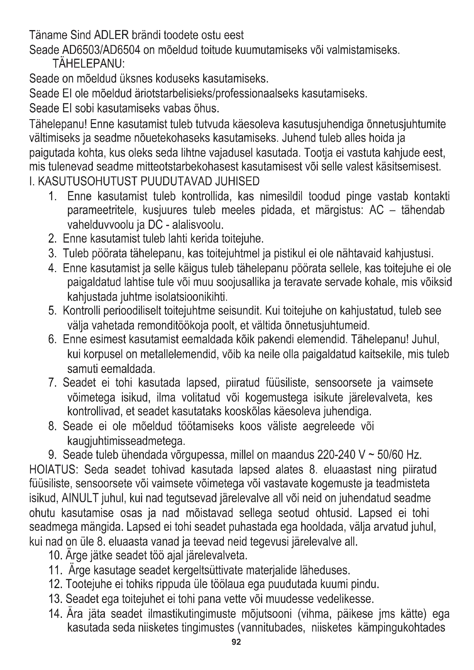 Leidke seadme juhend tasuta AD 6504 ADLER PDF-formaadis.