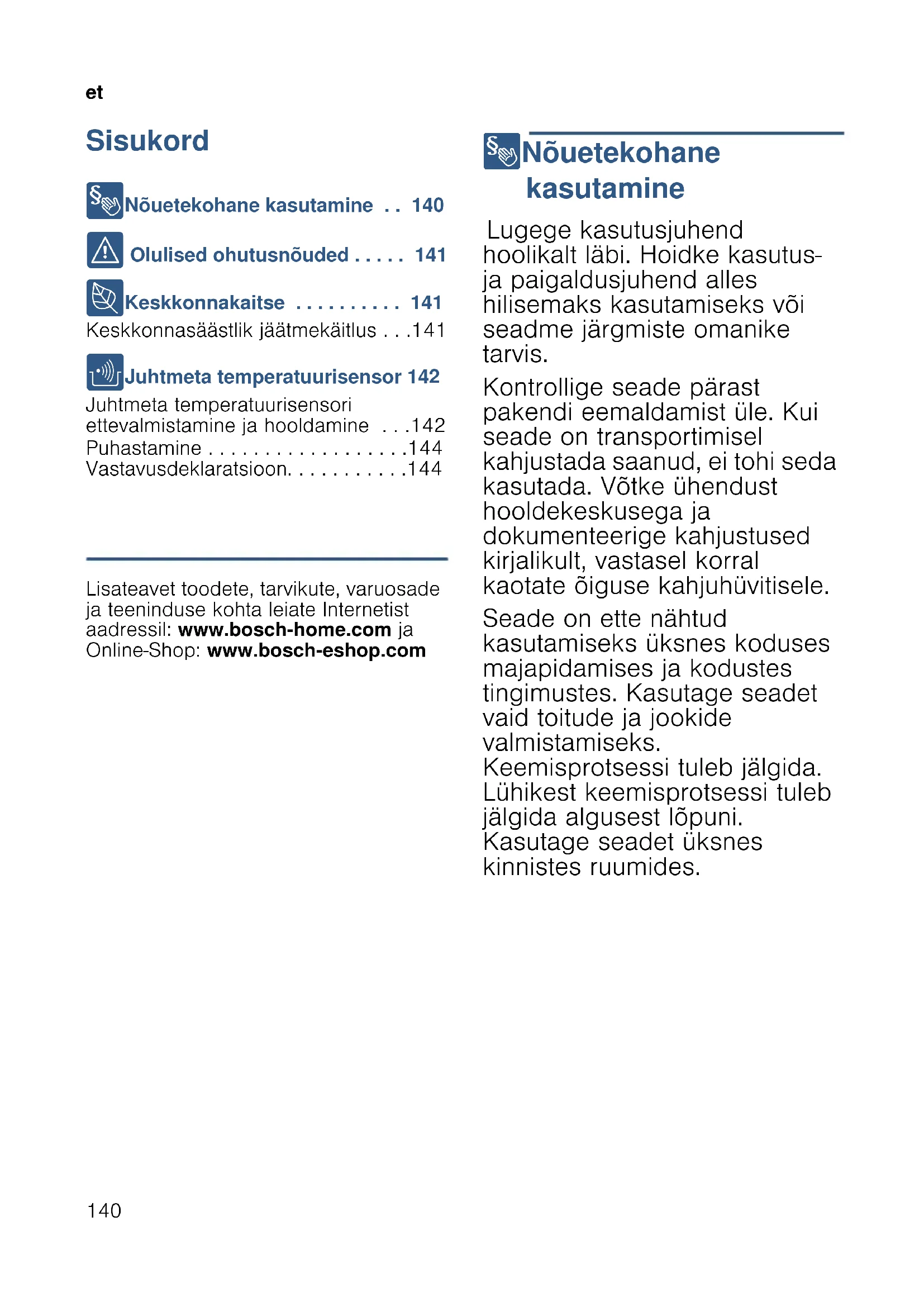 - Sisukord etKasut usj uhend 8 Nõuetekohane kasutamine p. 140