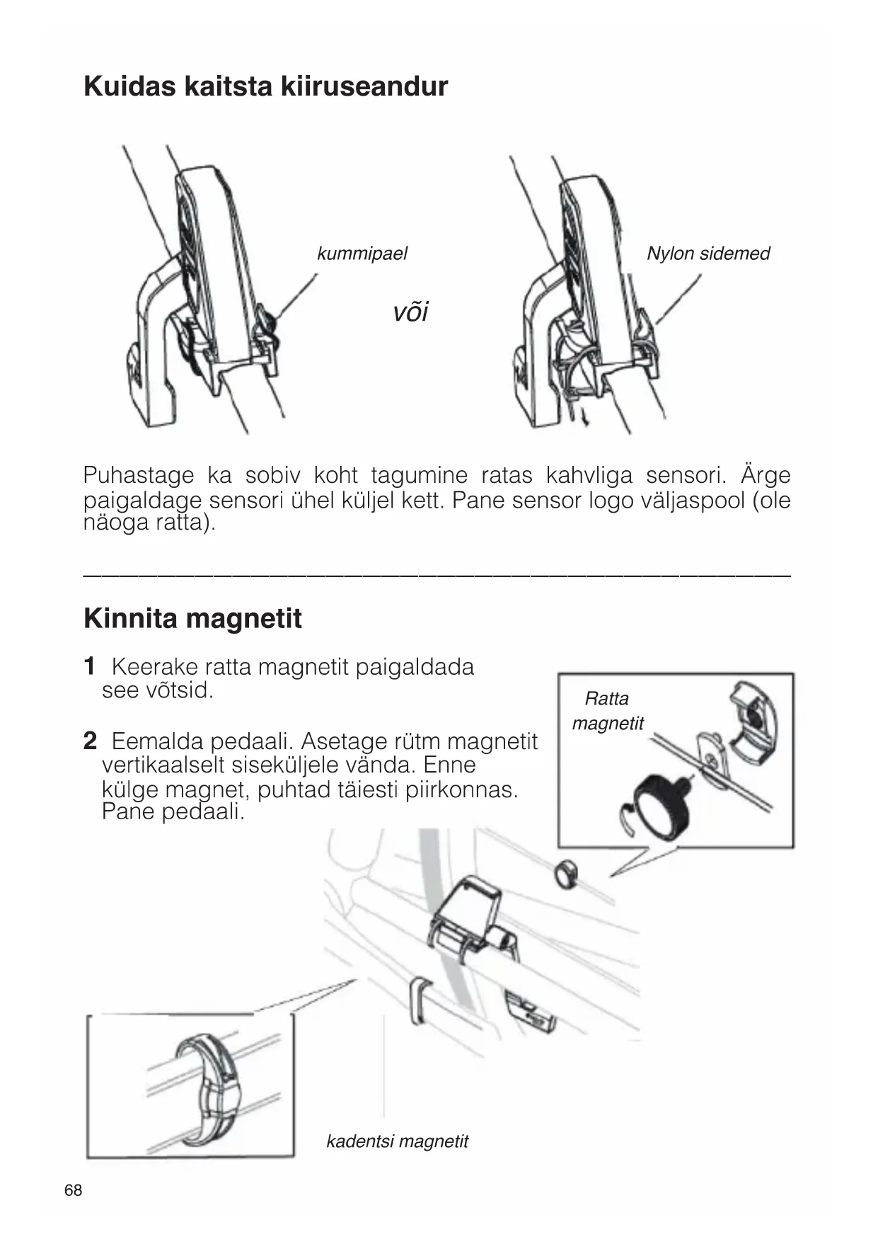 Kuidas ühendada kiiruse sensori ja magnetit kiirus sensori kadentsi magnetit Ratta magnetit kruvikeeraja Nylon kaabel kummipael kadentsi sensori kiirus sensori Ratta magnetit kadentsi magnetit68 Kuidas kaitsta kiiruseandur Puhastage ka sobiv koht tagumine ratas kahvliga sensori. Ärge paigaldage sensori ühel küljel kett. Pane sensor logo väljaspool (ole näoga ratta).