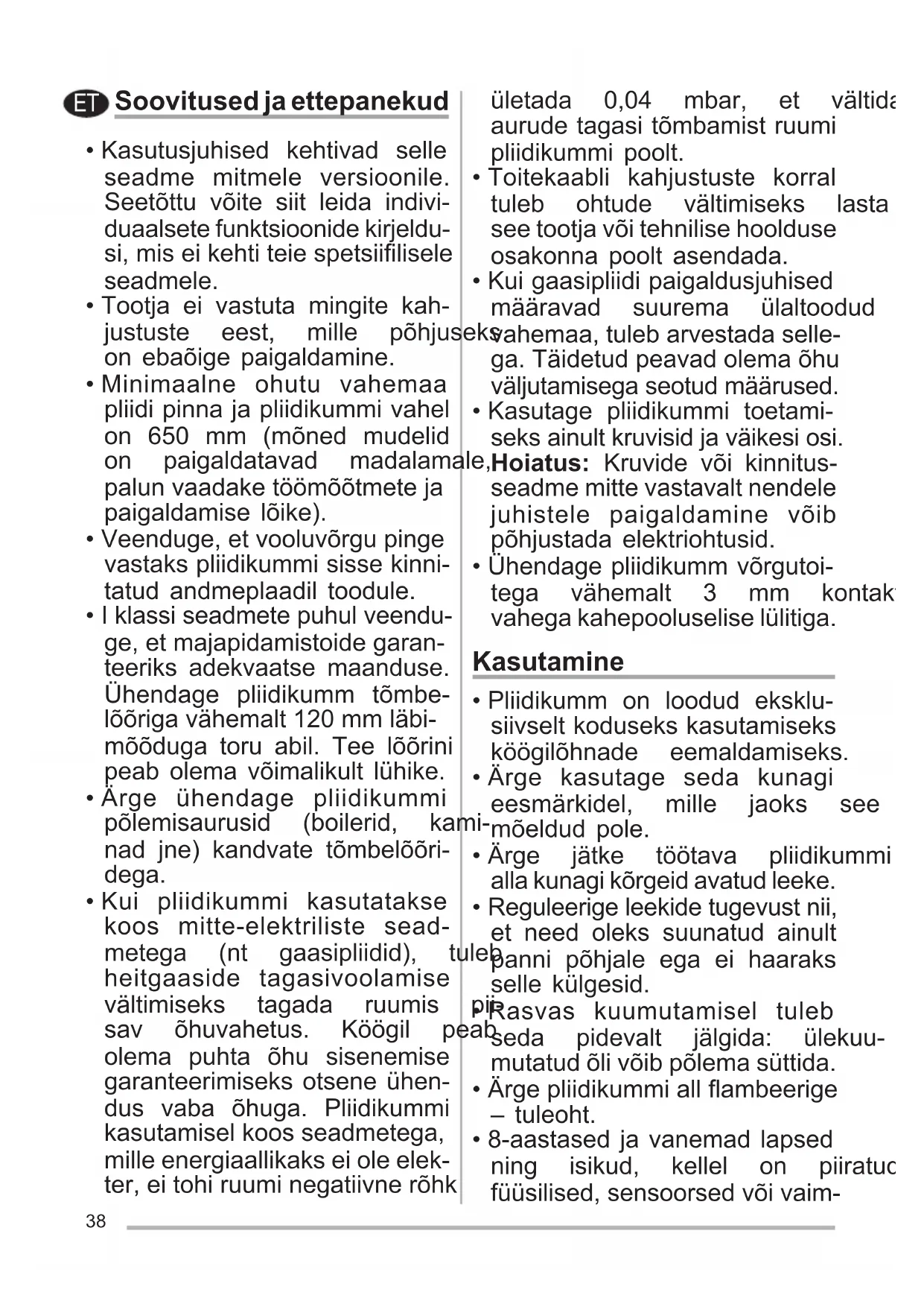 - Ärge ühendage pliidikummi põlemisaurusid (boilerid, kami- nad jne) kandvate tõmbelõõri- dega.