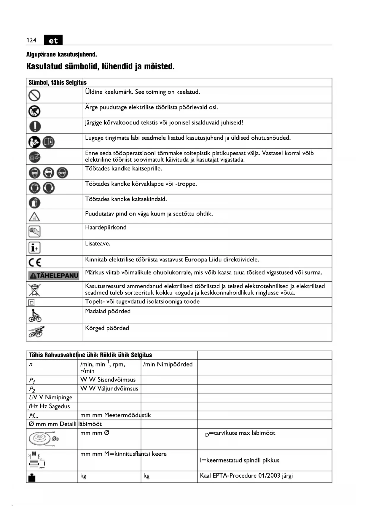Enne elektrise tooriista kasutuselevt'u lugege pohjalikult labi kasutusjuhend ja juurdekuuluvad üldised ohutusnouded (dokumendi nr