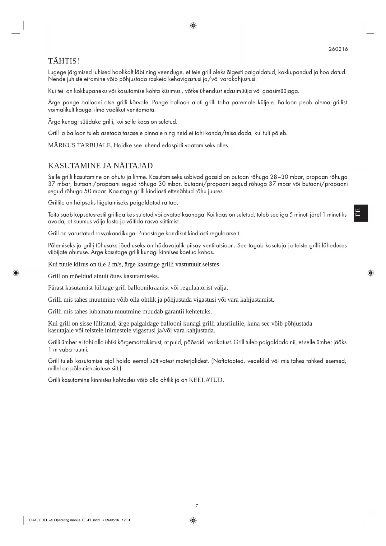 HOIATUS. SÖEGRILLI KASUTAMISEL HOIDKE VASAKPOOLNE RIIUL ALATI ÜLAL. KUUMADE PINDADE HOIATUS. Kasutage söegrilli õhuluugi avamisel või sulgemisel ahjukinnast. DUAL FUEL +S Operating manual EE-PL.indd 13 29-02-16 12:31GAASIGRILLI GARANTII Peale toote müünud kaupluse garantii nõustub Jamie Oliver BBQ väljastama asendusosi, kui pärast algset ostukuupäeva ilmneb määratud garantiiperioodi jooksul seadmes mis tahes materjali- või valmistusdefekt. See kehtib ainult juhul, kui grilli on kasutatud järgmistel tingimustel. e. Grilli on kasutatud kodumajapidamises kodusel otstarbel. f. Grilli pole muudetud ega remonditöid teinud volituseta isikud. g. Grilli on hoitud terve talve kuivades tingimustes. h. Grilli pole kahjustatud.