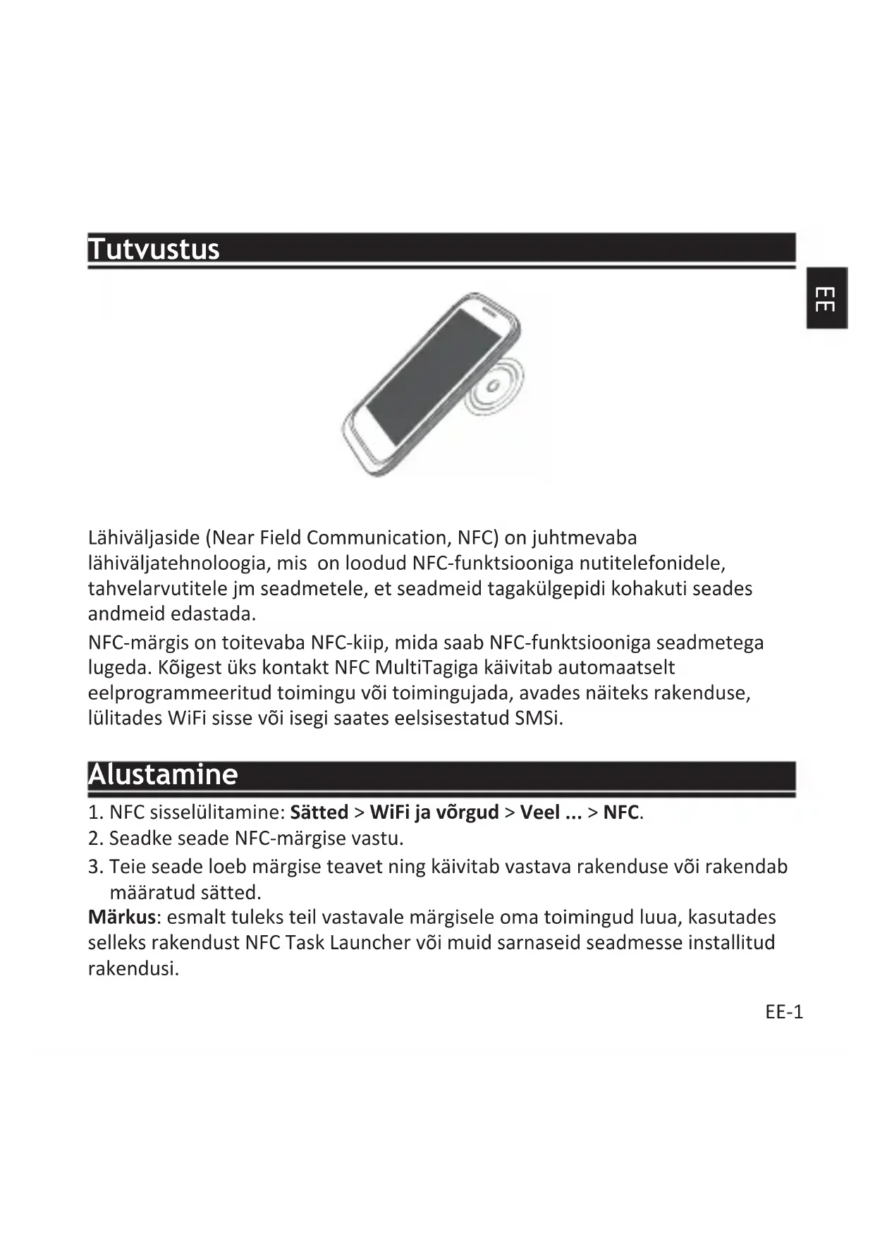 määratud sätted. Märkus: esmalt tuleks teil vastavale märgisele oma toimingud luua, kasutades selleks rakendust NFC Task Launcher või muid sarnaseid seadmesse installitud rakendusi.EE-2