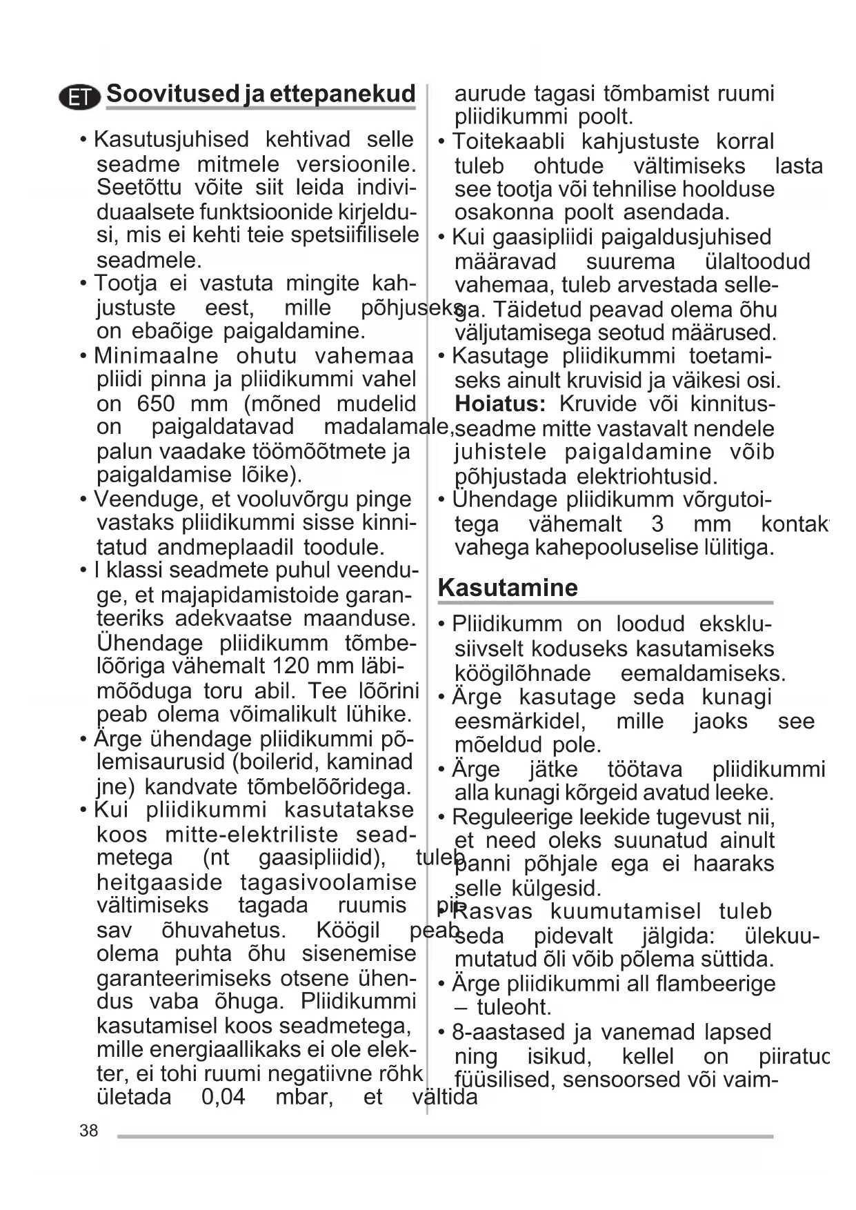 - Ärge ühendage pliidikummi põ- lemisaurusid(boilerid,kaminad jne) kandvate tõmbelõõridega.