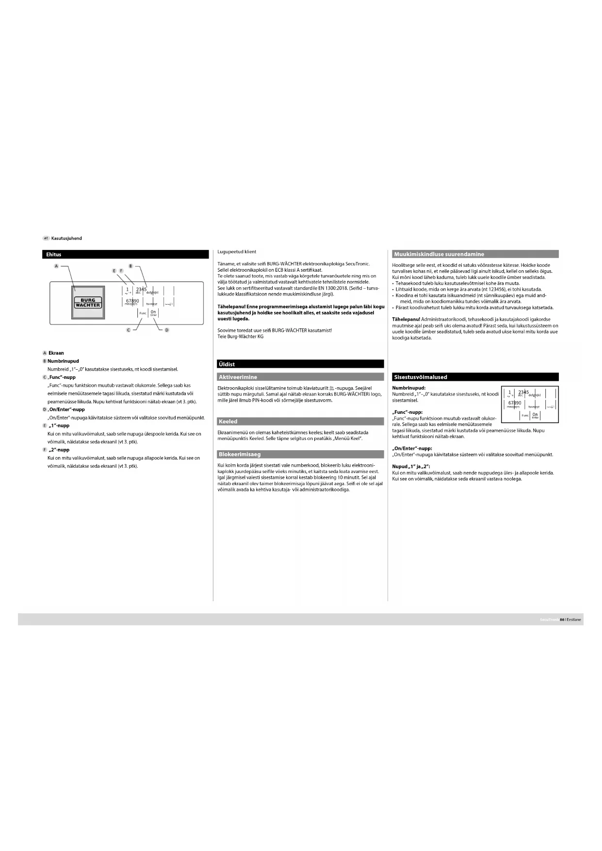 Käteselvaga Kinnitab BURG-WACHTER KG, et se vastab direktivide 2013/EO/EMC) ja 2011/65/EU (RoHS).
