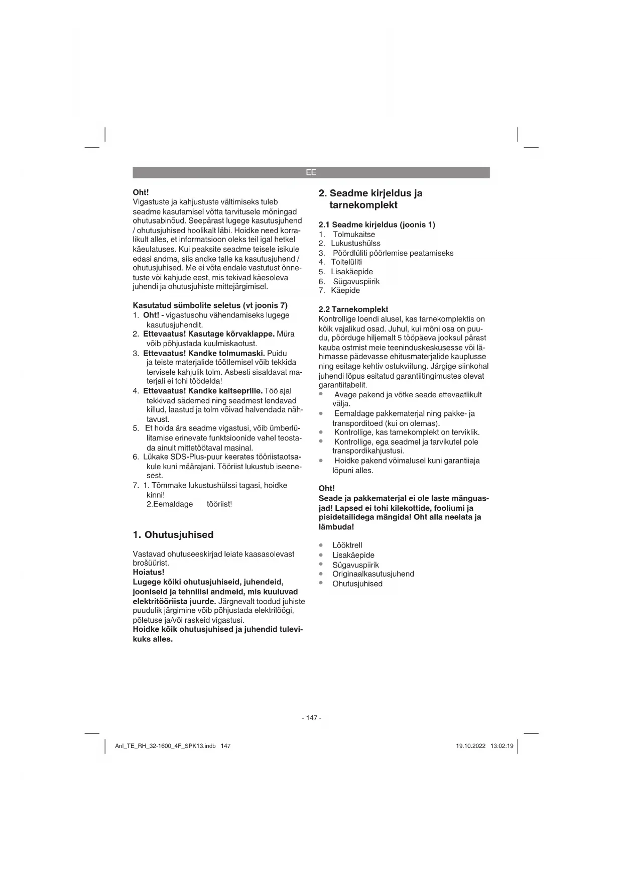 vibreerimisest juhul, kui seadet kasutatakse pikema aja jooksul või seda ei kasutata ega hooldata nõuetele vastavalt. Anl_TE_RH_32-1600_4F_SPK13.indb 148Anl_TE_RH_32-1600_4F_SPK13.indb 148 19.10.2022 13:02:1919.10.2022 13:02:19EE
