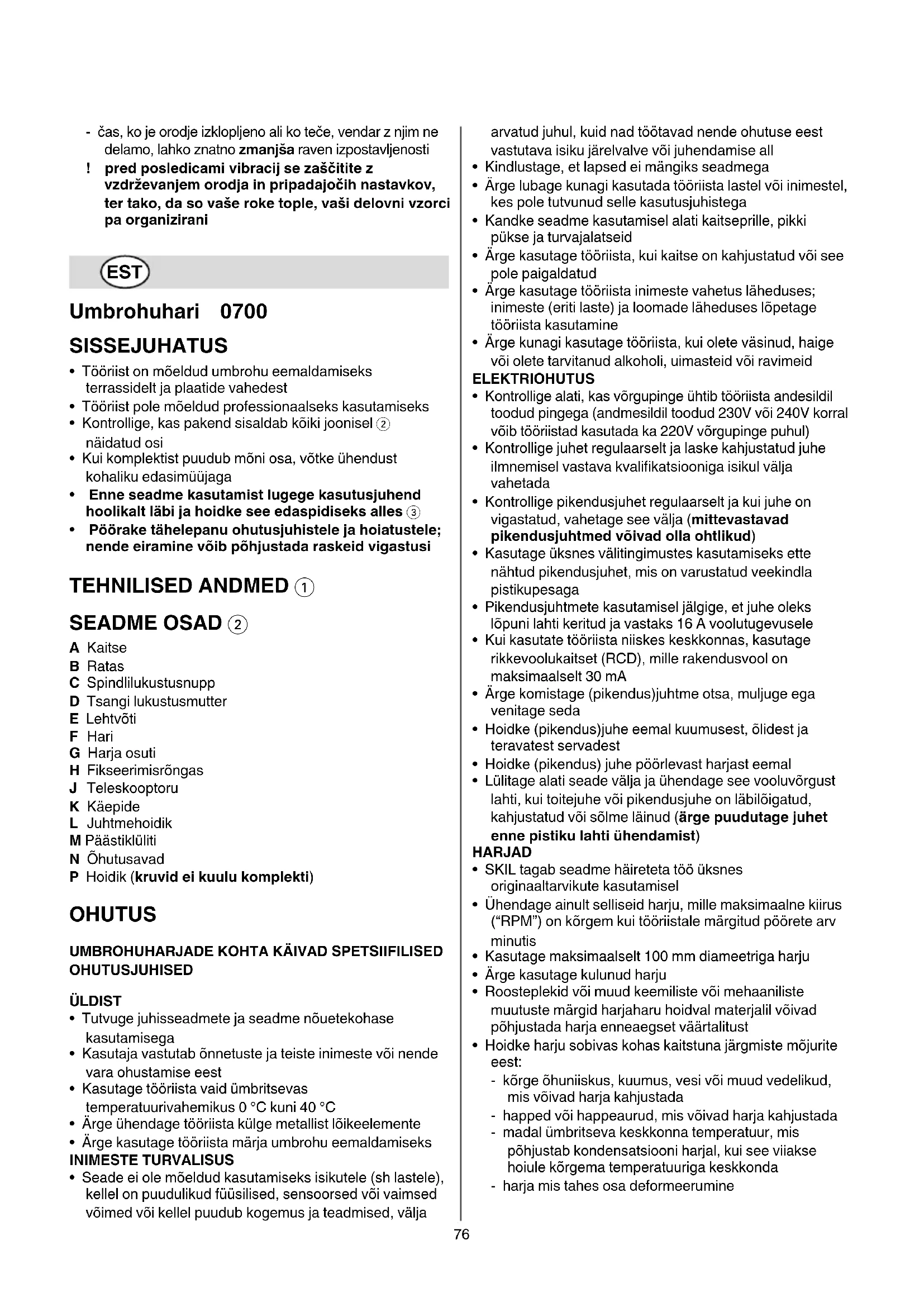 KASUTUSJUHEND 0700 AA SKIL