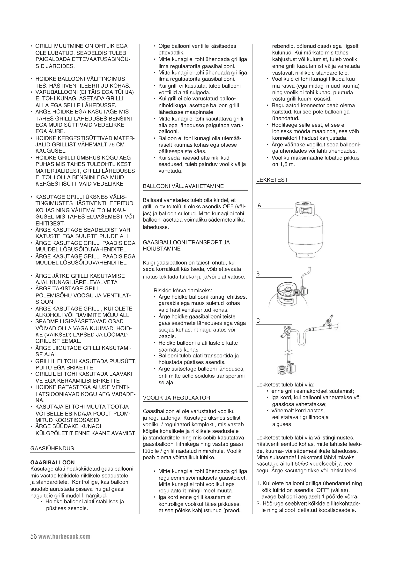 le ning allpool loetletud koostisosadele. Man_Brahma_5.2_090924_A.indd 56 24/09/09 15:38www.barbecook.com 57 Kontrollige lekkeid järgmistest kohtadest:
