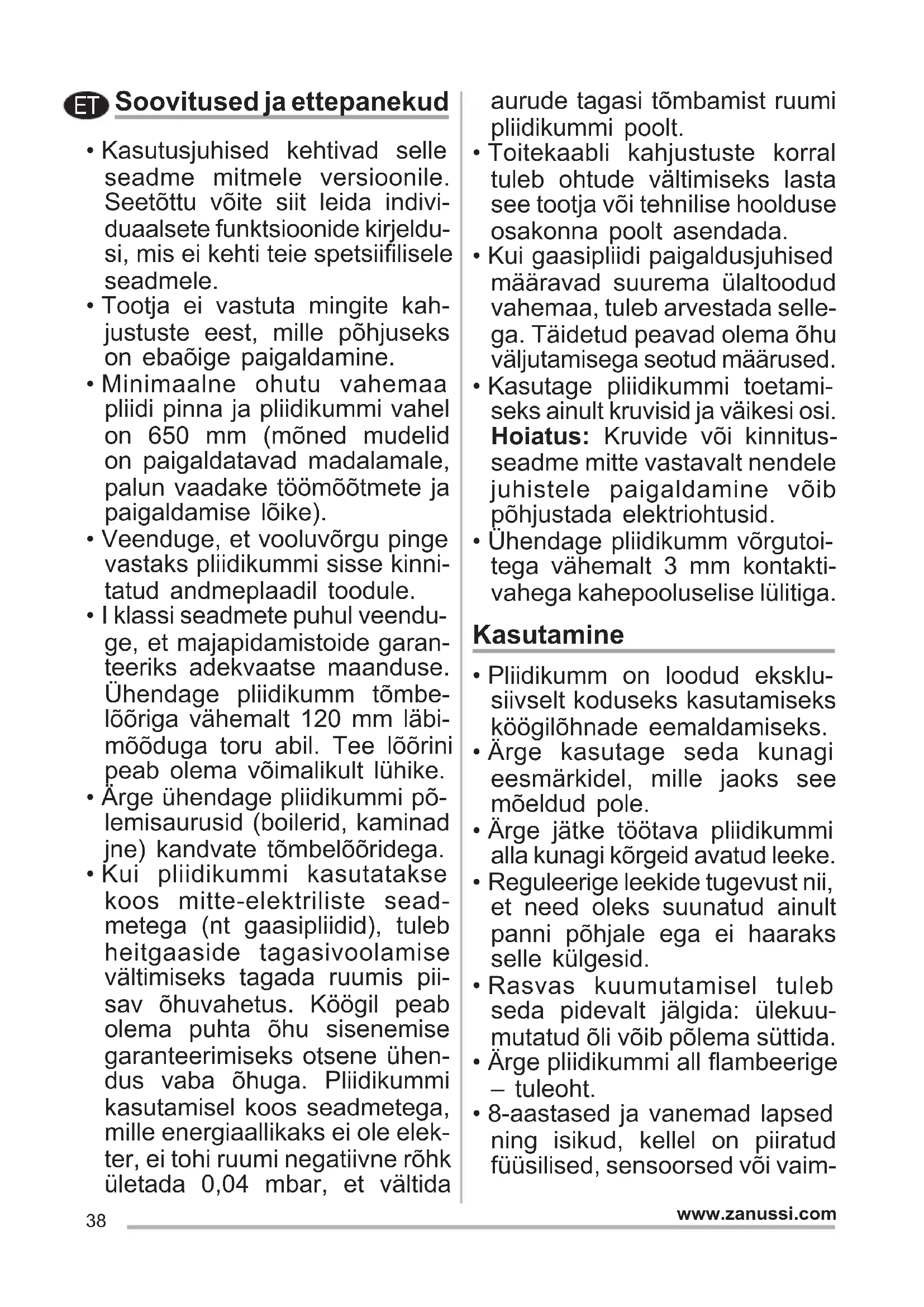 - Ärge ühendage pliidikummi põ- lemisaurusid (boilerid, kaminad jne) kandvate tõmbelõõridega.