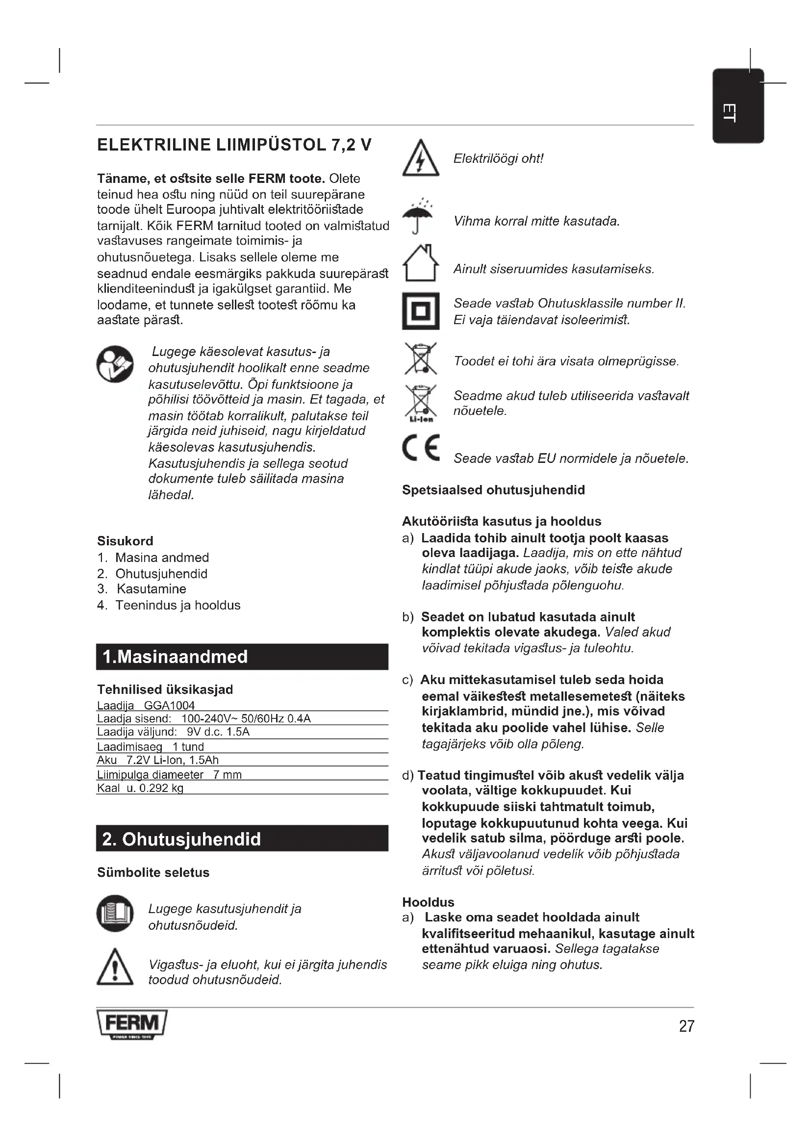 KASUTUSJUHEND GGM1003 Ferm
