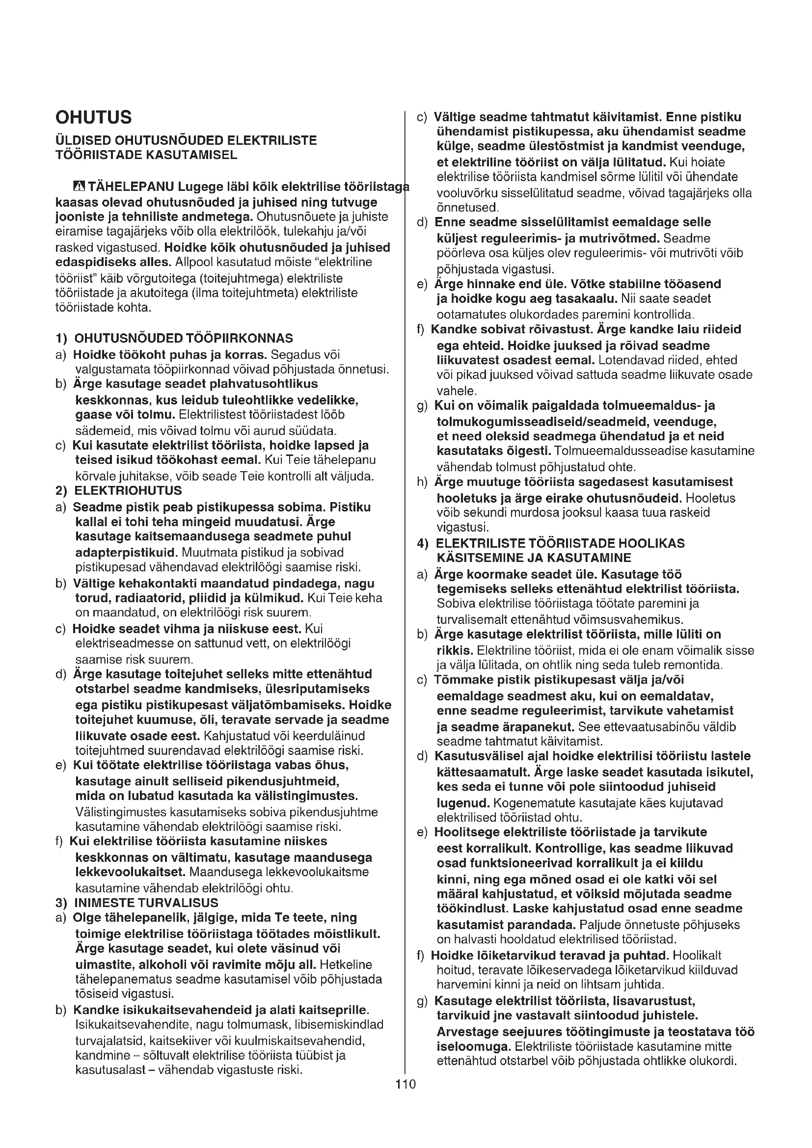 ÜLDISED OHUTUSNOUDED ELEKTRILISTE TÖÖRISTADE KASUTAMISEL