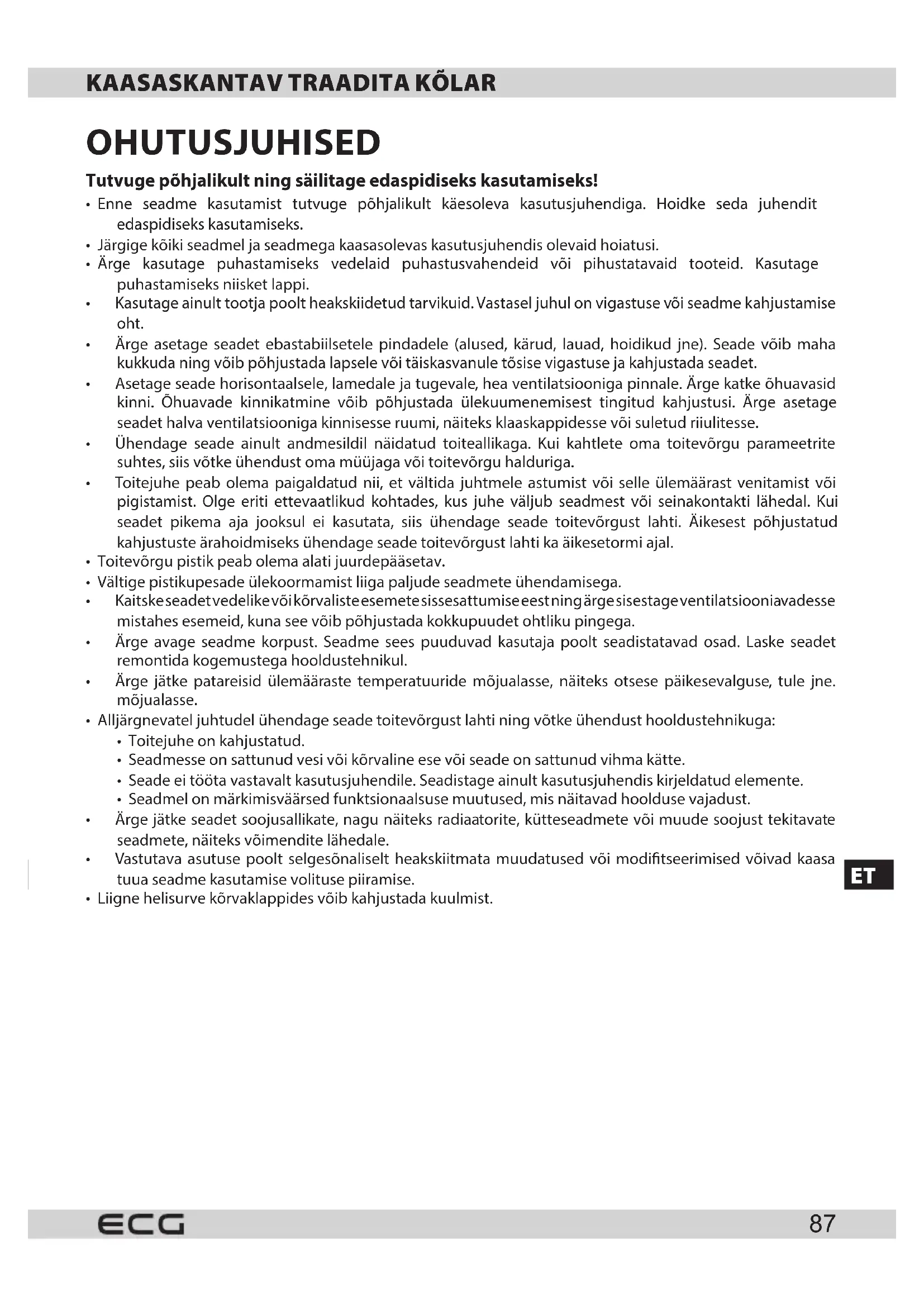 - Enne seadme kasutamist tutvuge pöhjalikult käesoleva kasutusjuhendiga. Hoidke seda juhendit edaspidiseks kasutamiseks.