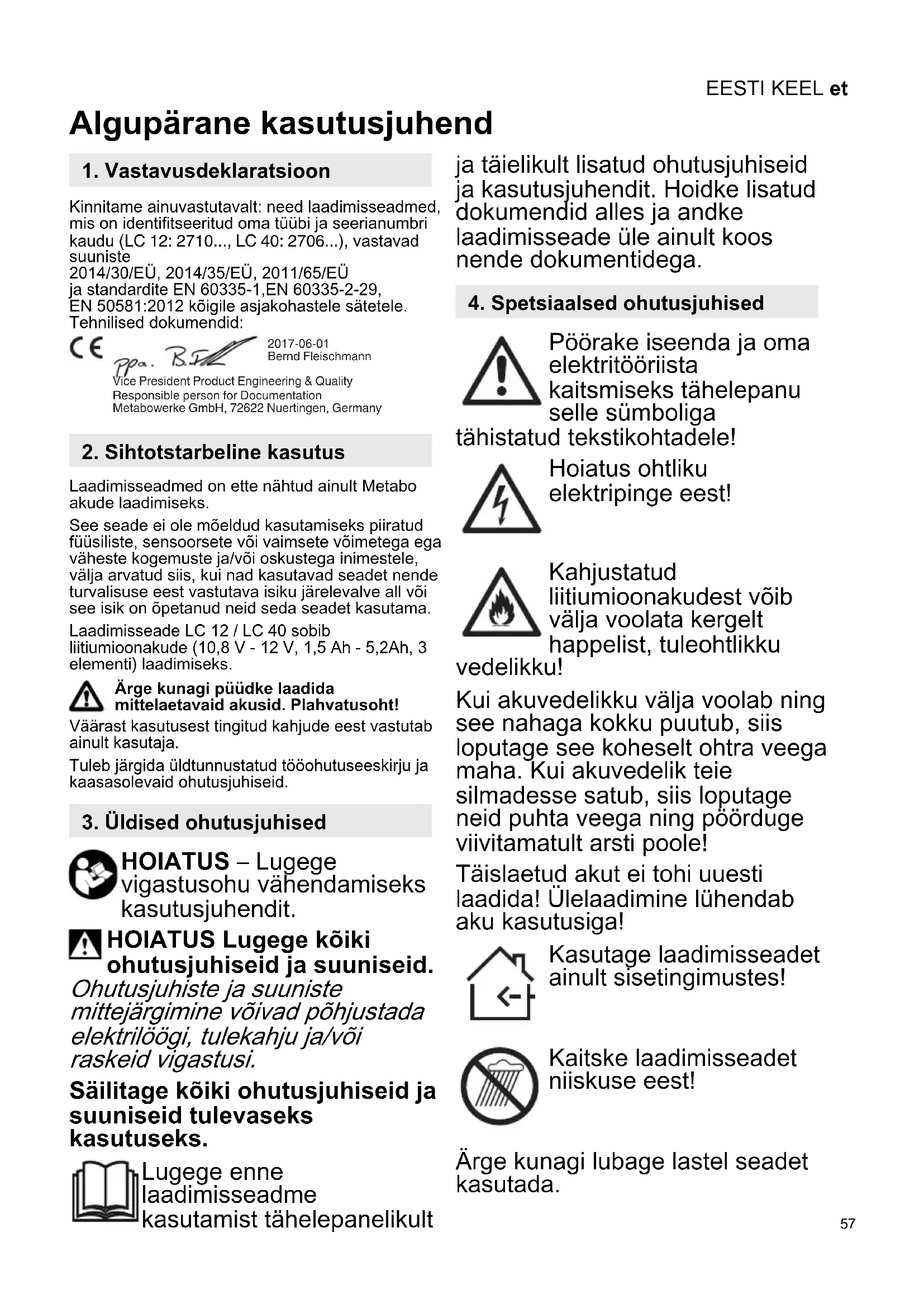 Leidke seadme juhend tasuta LC 12 METABO PDF-formaadis.