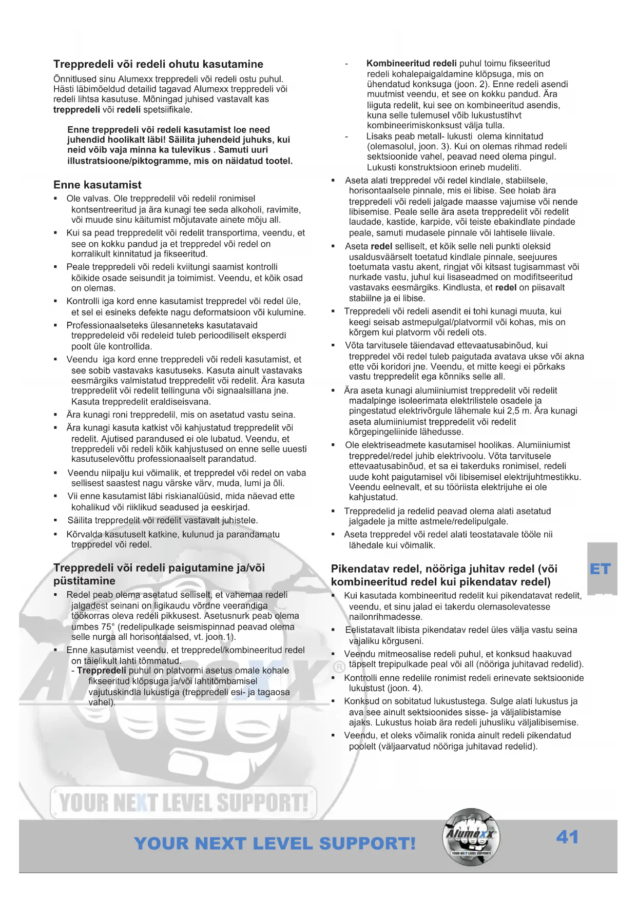 Isikliku ohutuse huvides kasuta ainult Alumexxi poolt soovitatud tarvikuid. - Āra jäta ühtegi töörilsta ja muud varustust treppredeli vöir redeli jalamile, et vältda nende otsa komistamist.