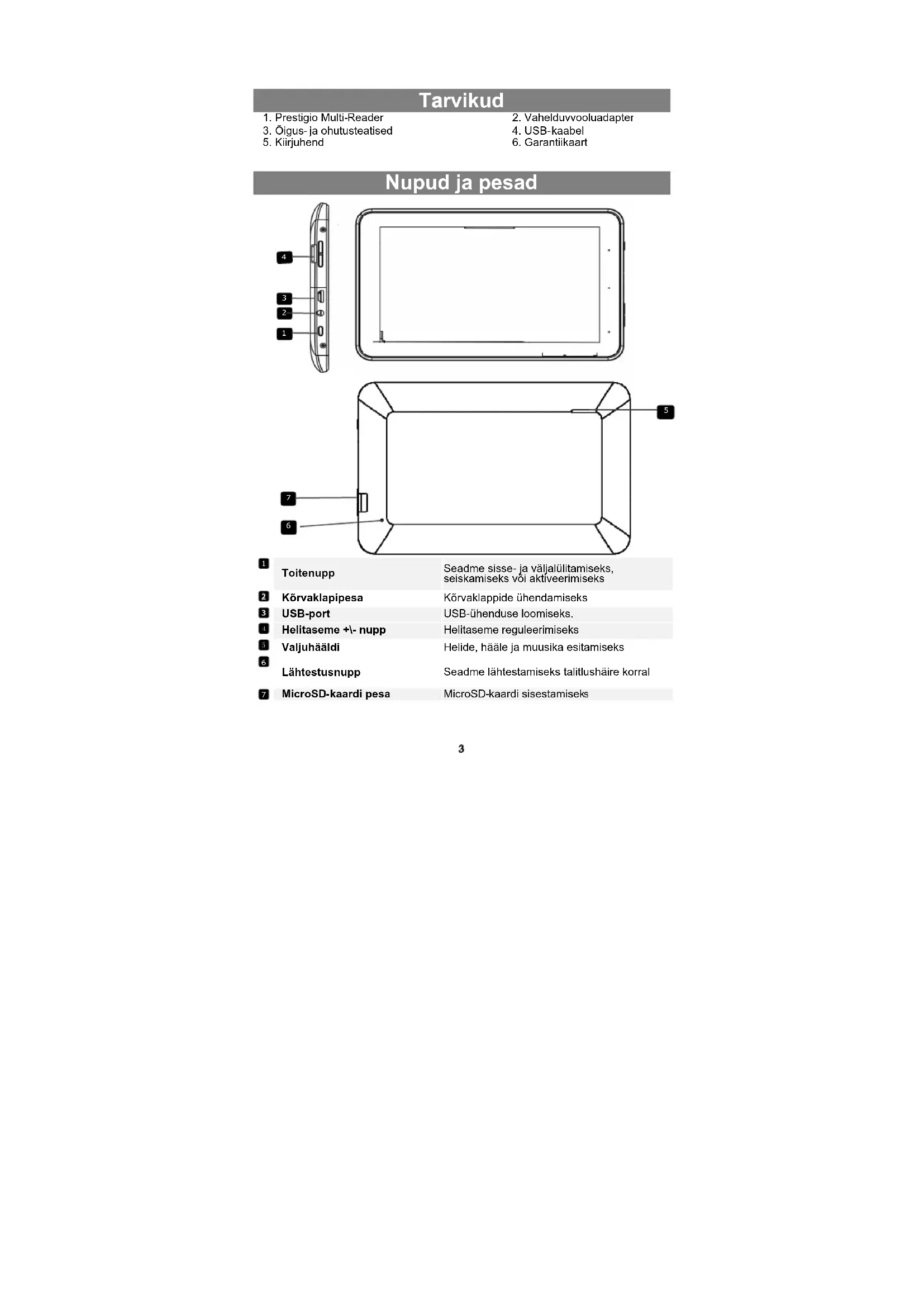 MultiReader PER5474BC - Tahvelarvuti PRESTIGIO - Tasuta kasutusjuhend