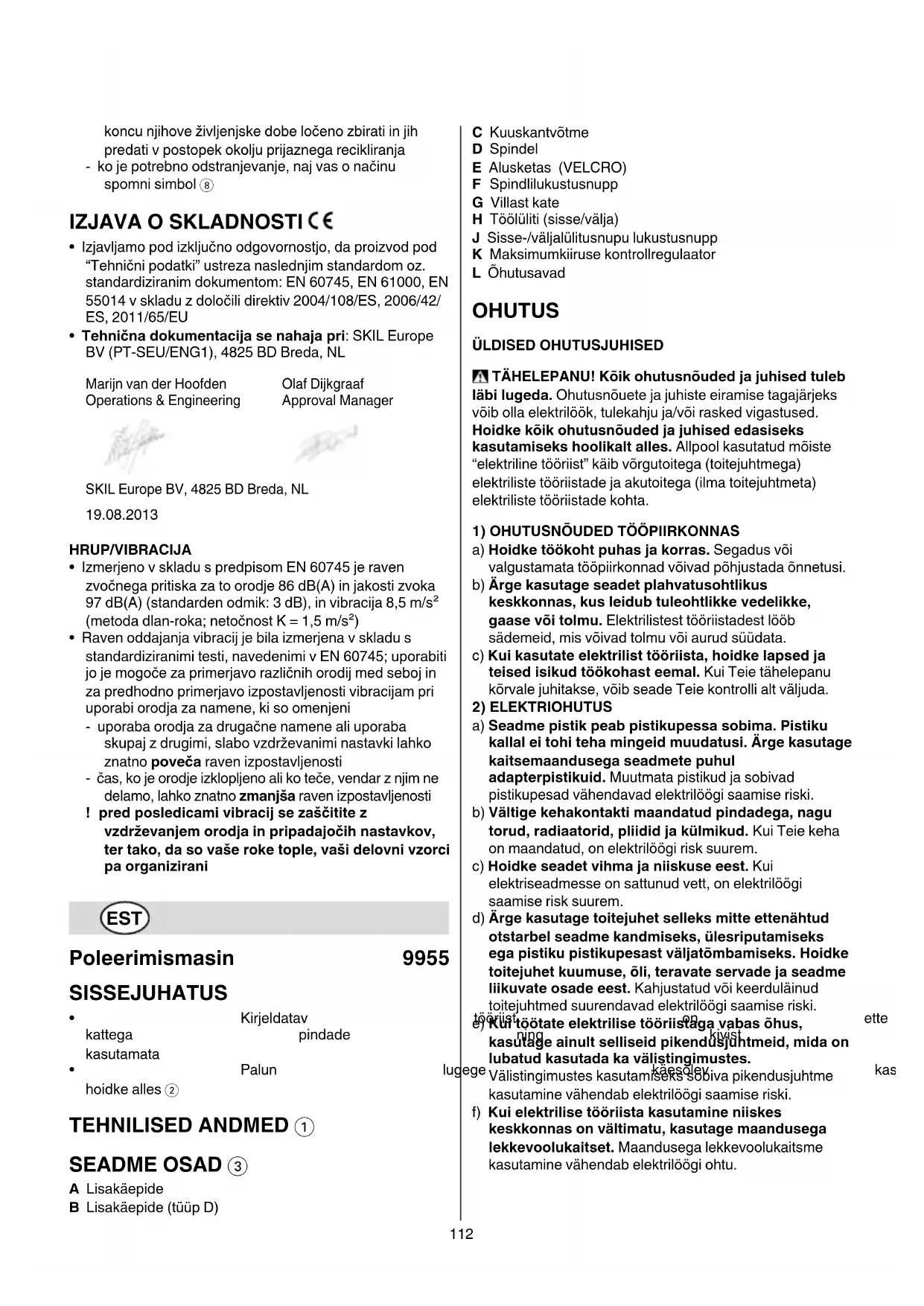 - Tehniline toimik saadaval Aadressil: SKIL Europe BV (PT-SEU/ENG1), 4825 BD Breda, NL