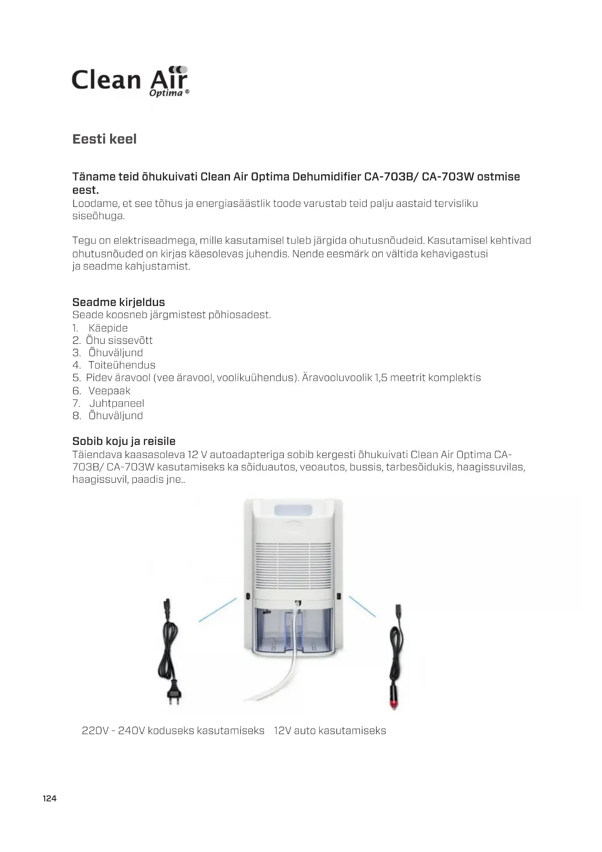 Leidke seadme juhend tasuta CA703 Clean Air Optima PDF-formaadis.