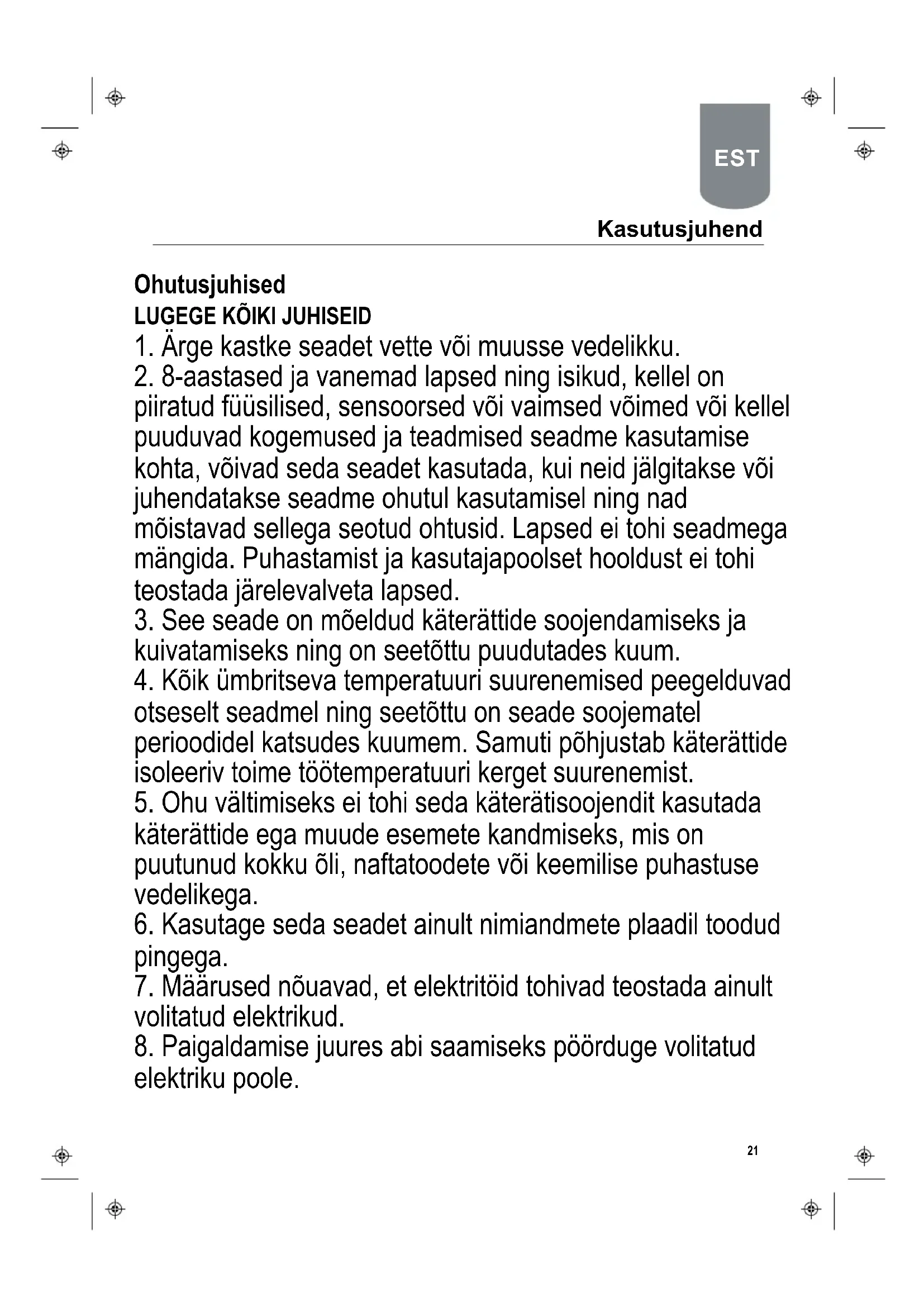 5. Ohu vältimiseks ei tohi seda käterätisoojendit kasutada