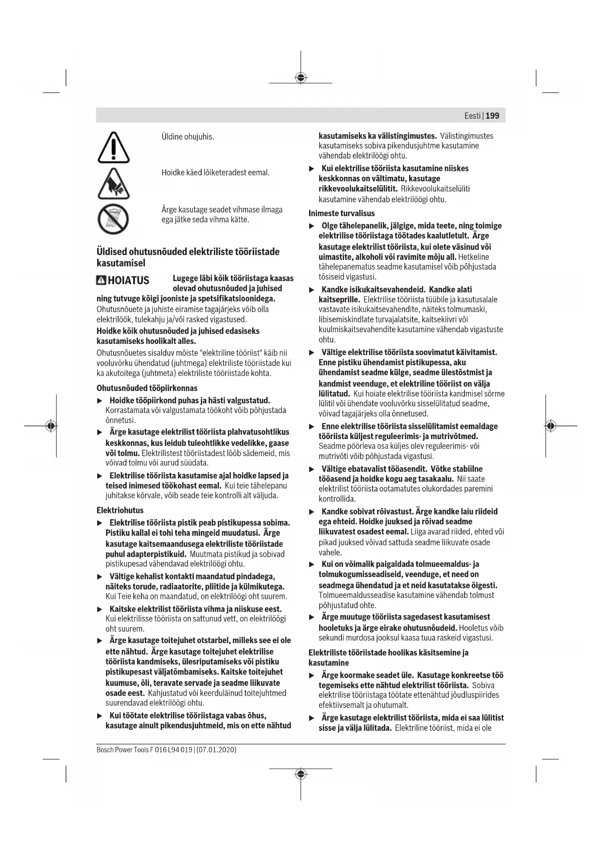 Kandke lõikamise ajal alati kaitsekindaid. Bosch Power Tools F 016 L94 019 | (07.01.2020)204 | Eesti